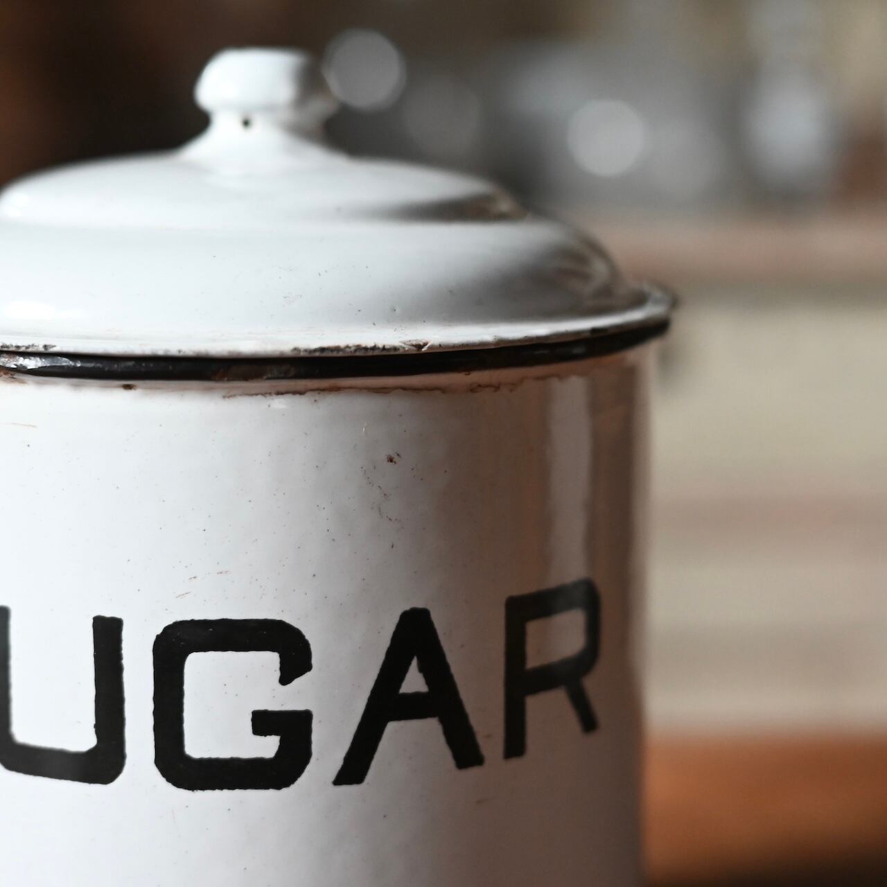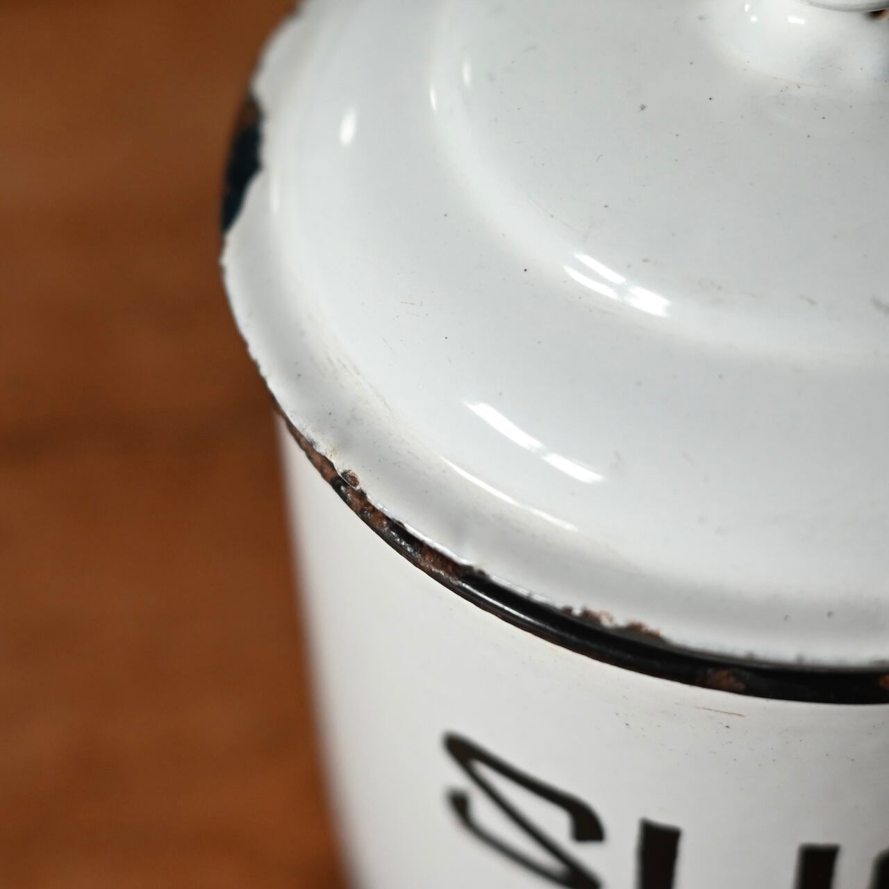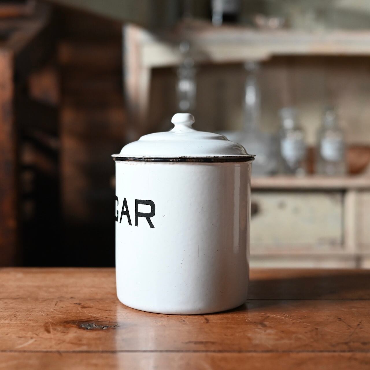 白地の琺瑯に"SUGAR"の文字が入ったキャニスターです。