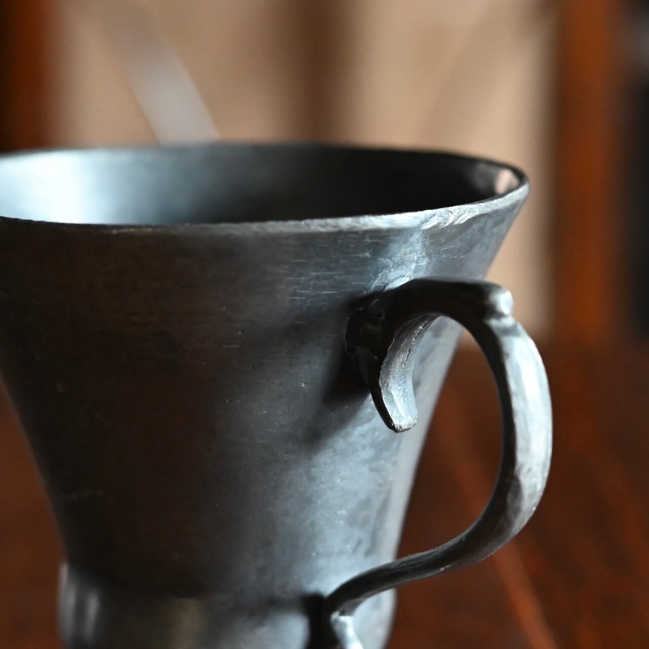 刻印などはありませんが、ピューターならではの雰囲気があるカップです。