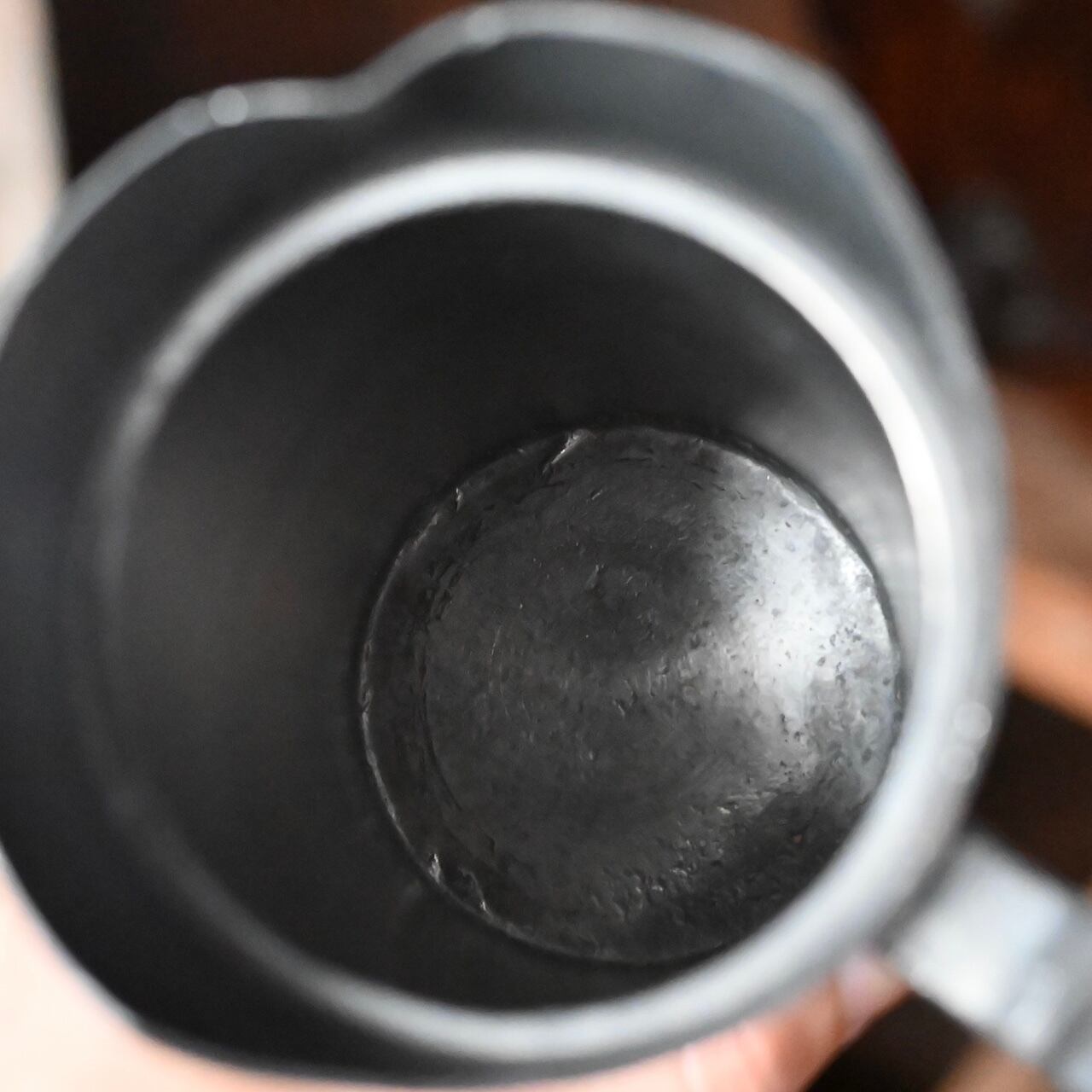 持ち手に"1/2LITER"の刻印があり、注ぎ口が歪んでしまっているのもまた経年を感じさせます。
