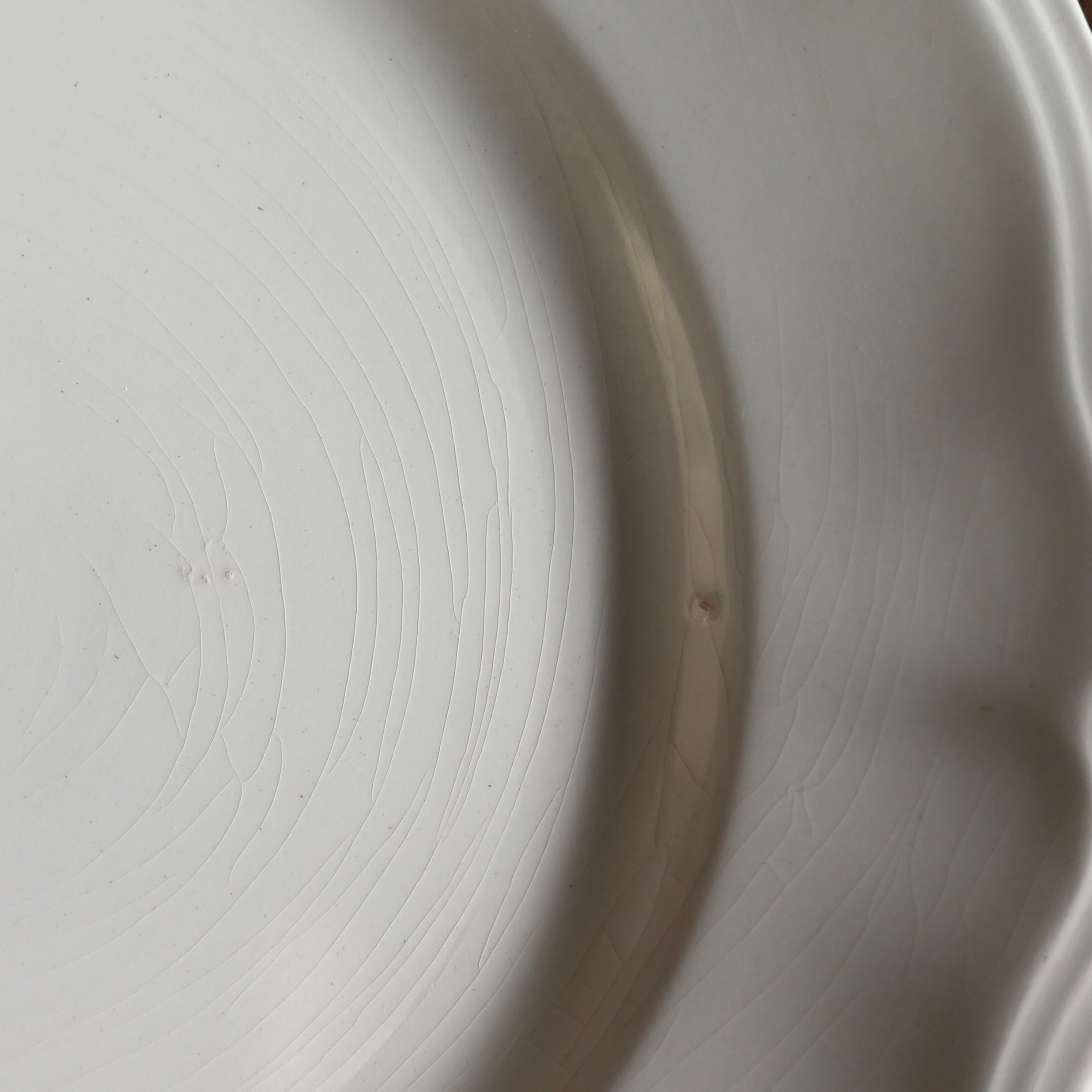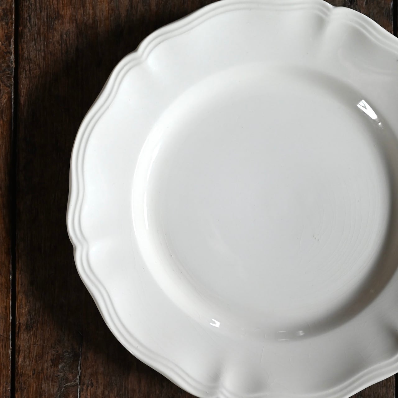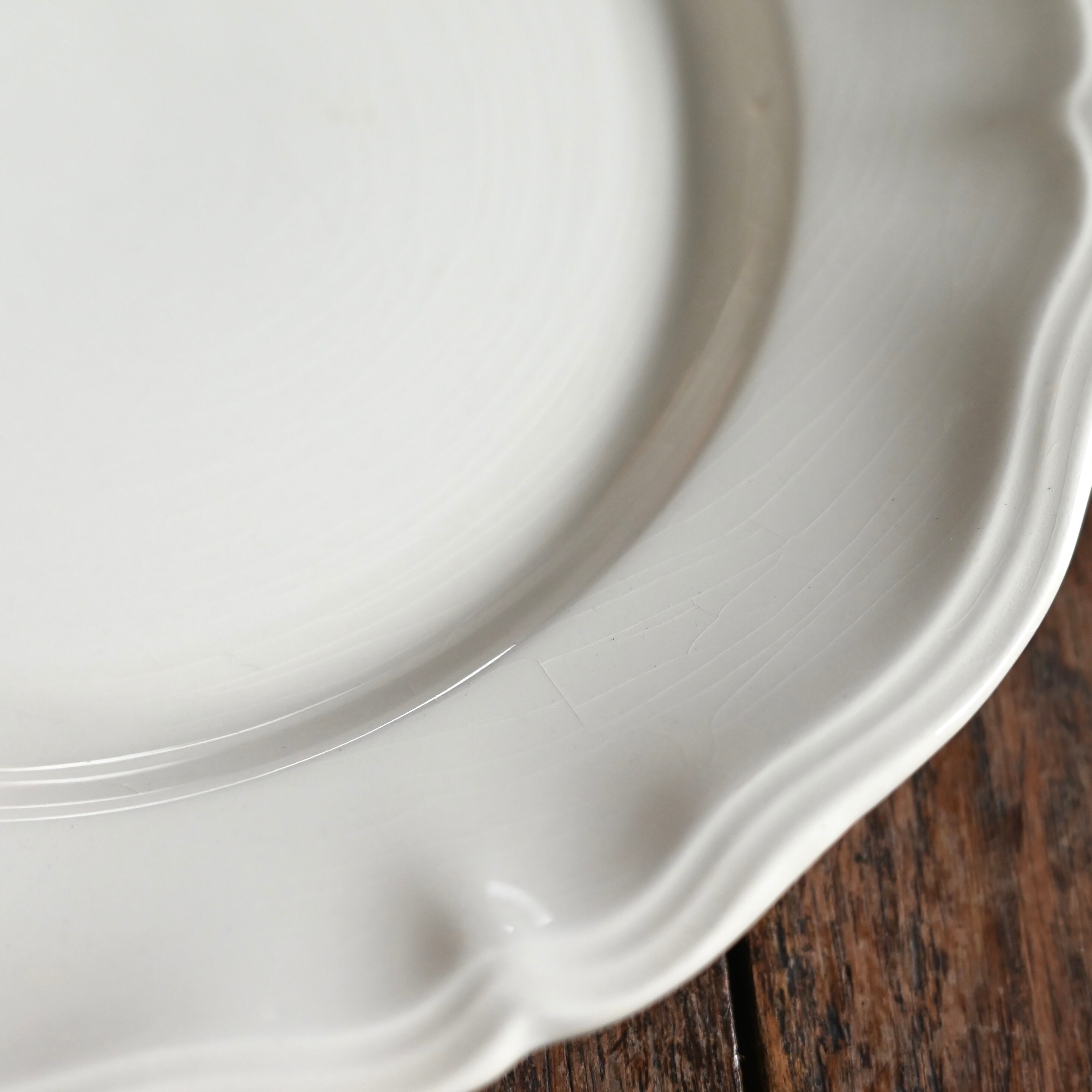 当店で取り扱いをしているフランスの食器は80年以上経過しているものが殆どです。古いものになりますので、貫入(釉薬の細かいひび割れ)やカトラリーによる傷、シミや汚れ、小さな欠けなどがあるものもございます。なるべく細かく写真を撮っておりますが、撮りきれない部分や水を含んで現れる貫入などもありますので、神経質な方や新品のようなクオリティーを求めるお客様には不向きな商品になっております。