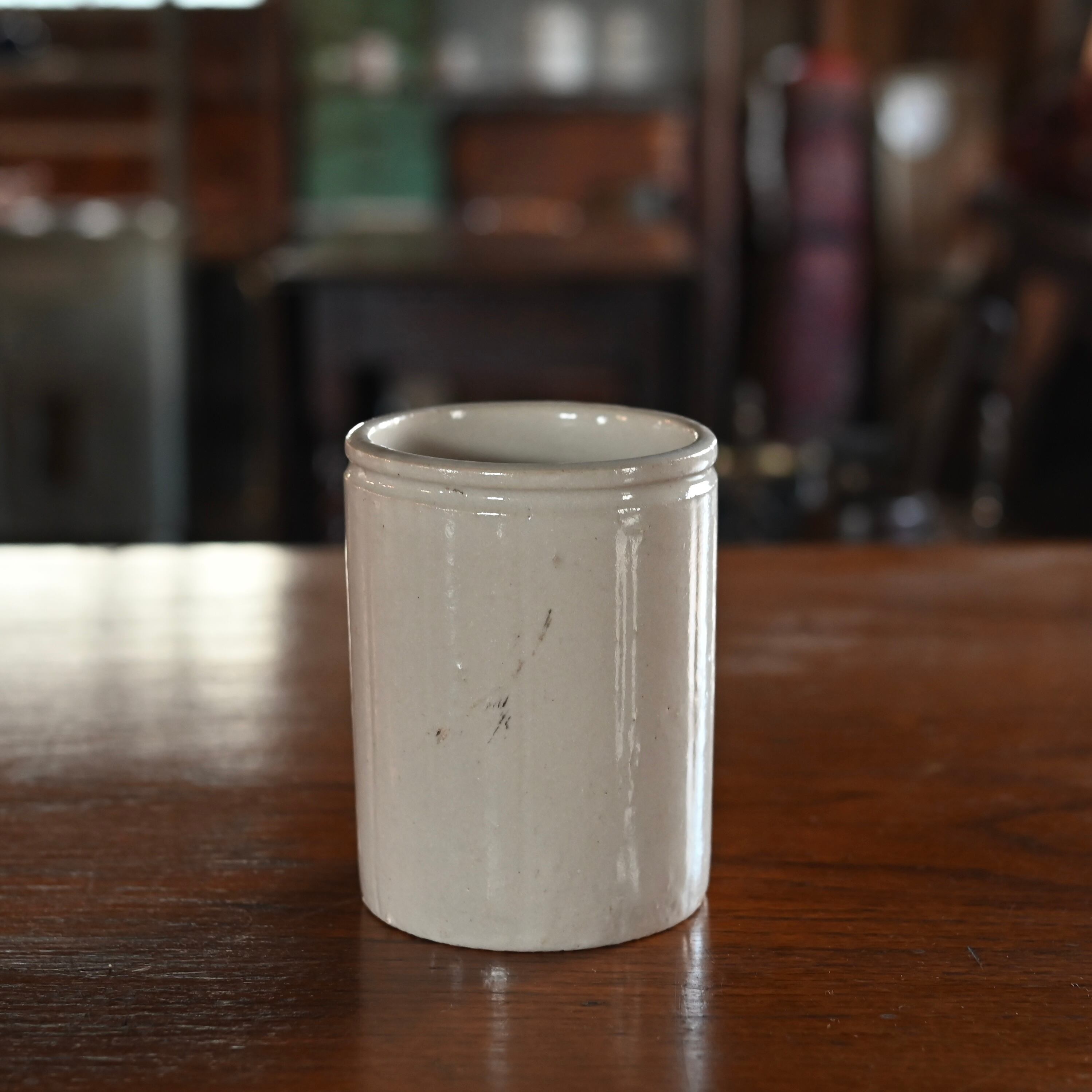 全体的に歪み傷や欠け貫入が多く、アンティークの風合いが魅力的で、カトラリーの収納やペン立てとして使用するのがおすすめです。
