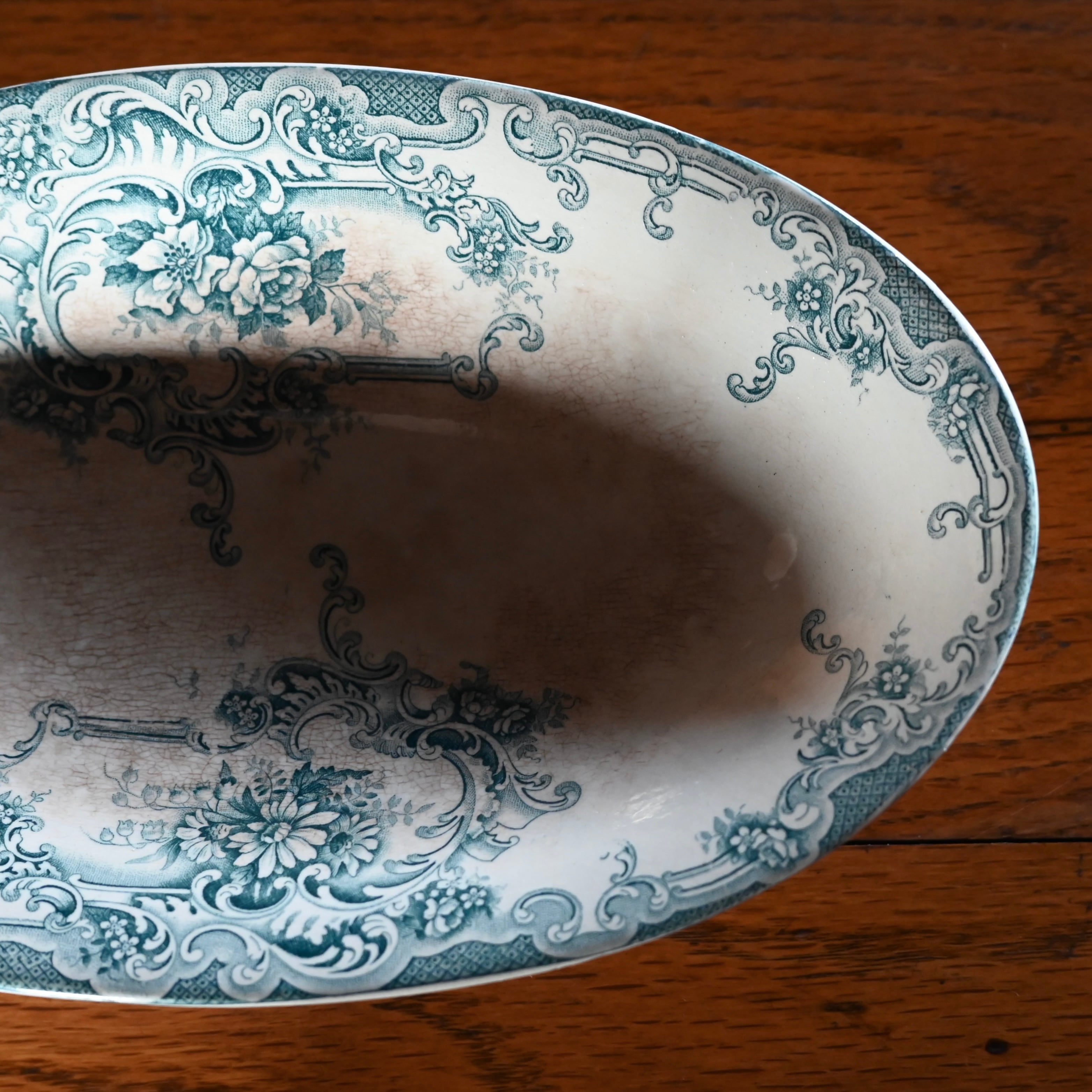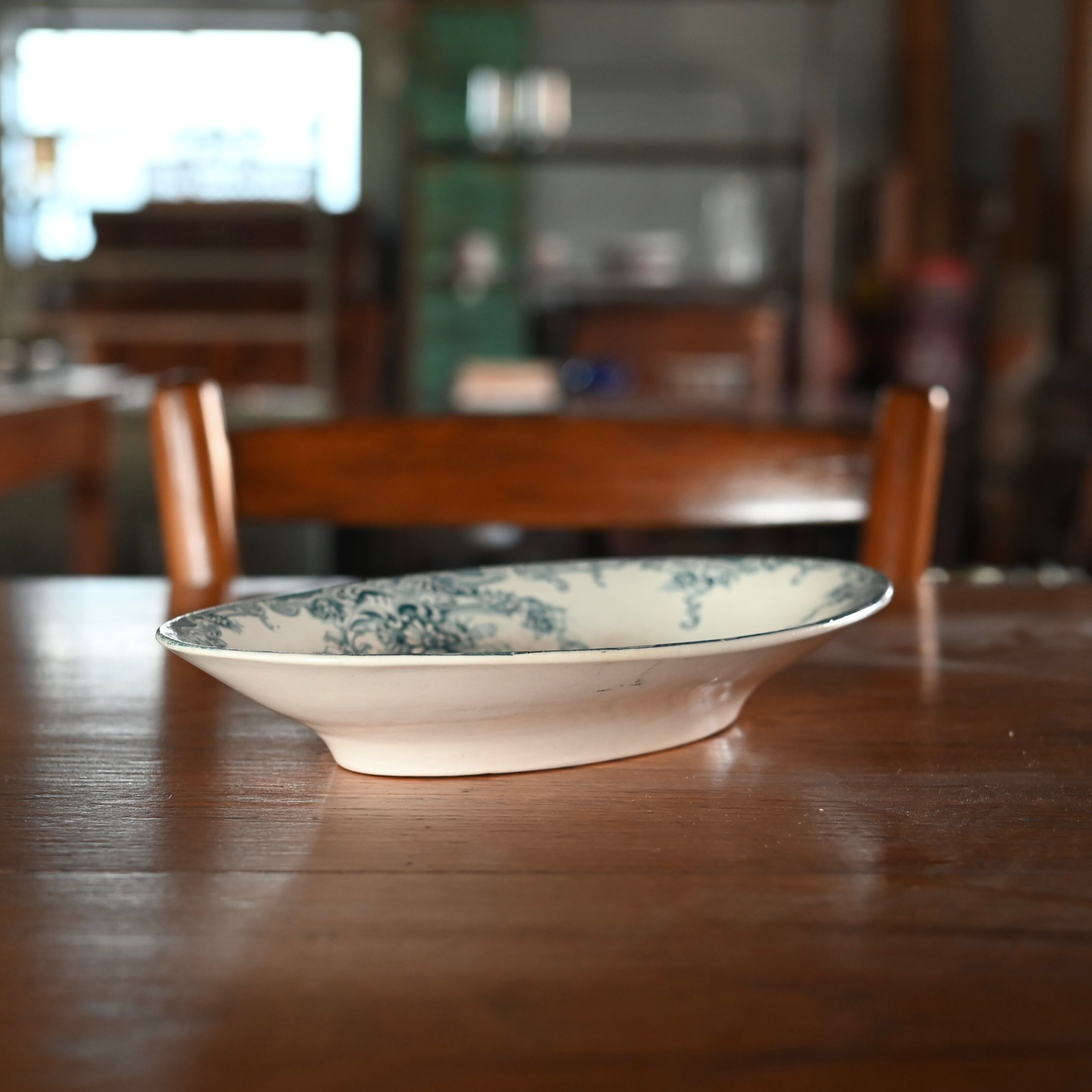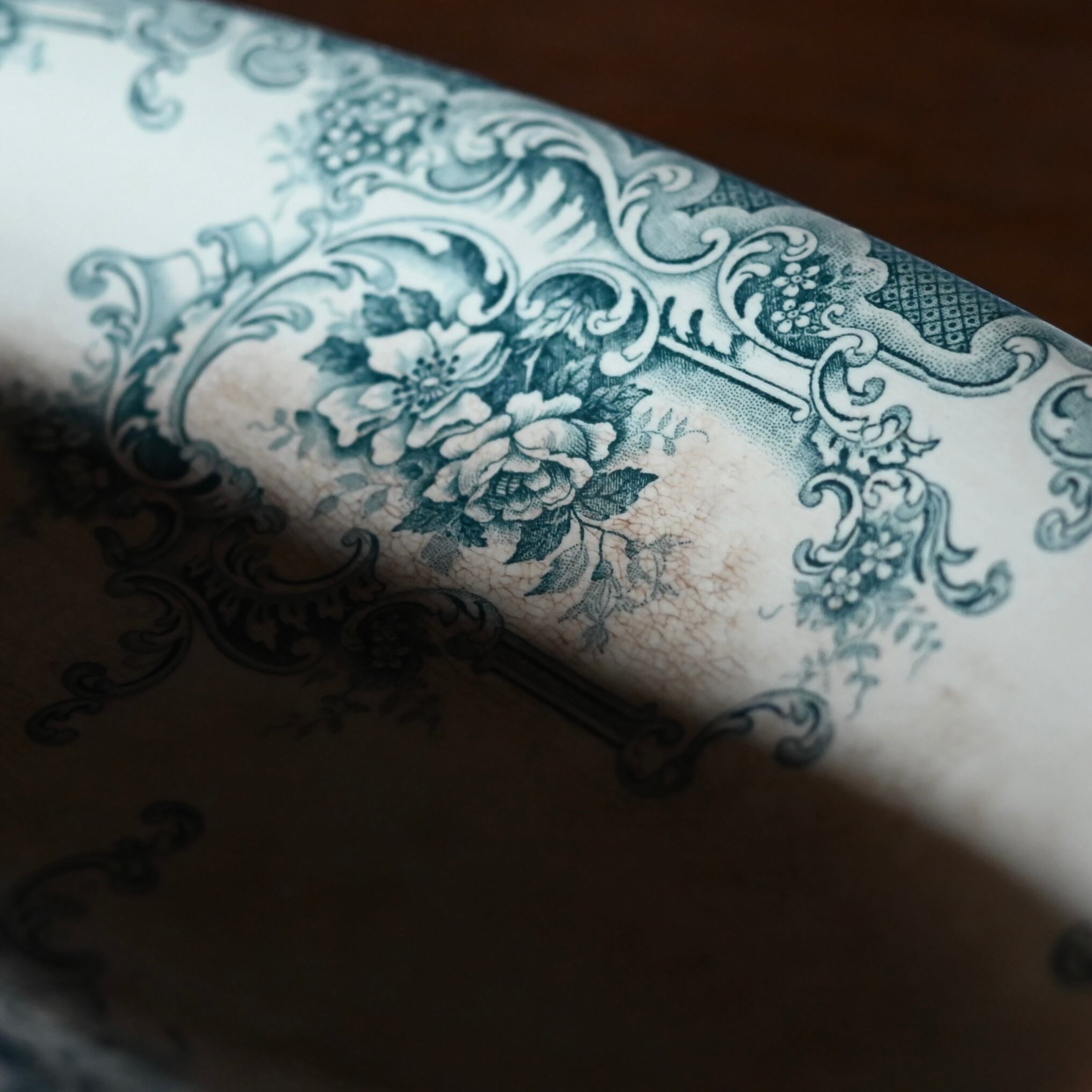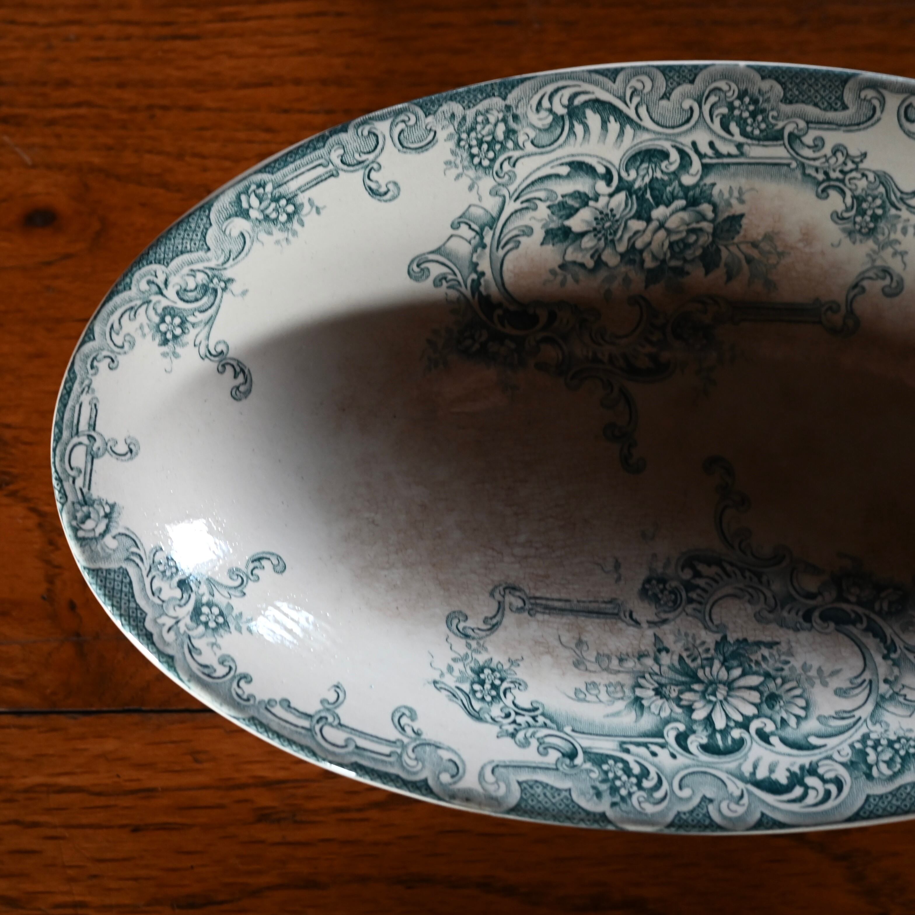 当店で取り扱いをしている食器は80年以上経過しているものが殆どです。古いものになりますので、貫入(釉薬の細かいひび割れ)やカトラリーによる傷、シミや汚れ、小さな欠けなどがあるものもございます。なるべく細かく写真を撮っておりますが、撮りきれない部分や水を含んで現れる貫入などもありますので、神経質な方や新品のようなクオリティーを求めるお客様には不向きな商品になっております。