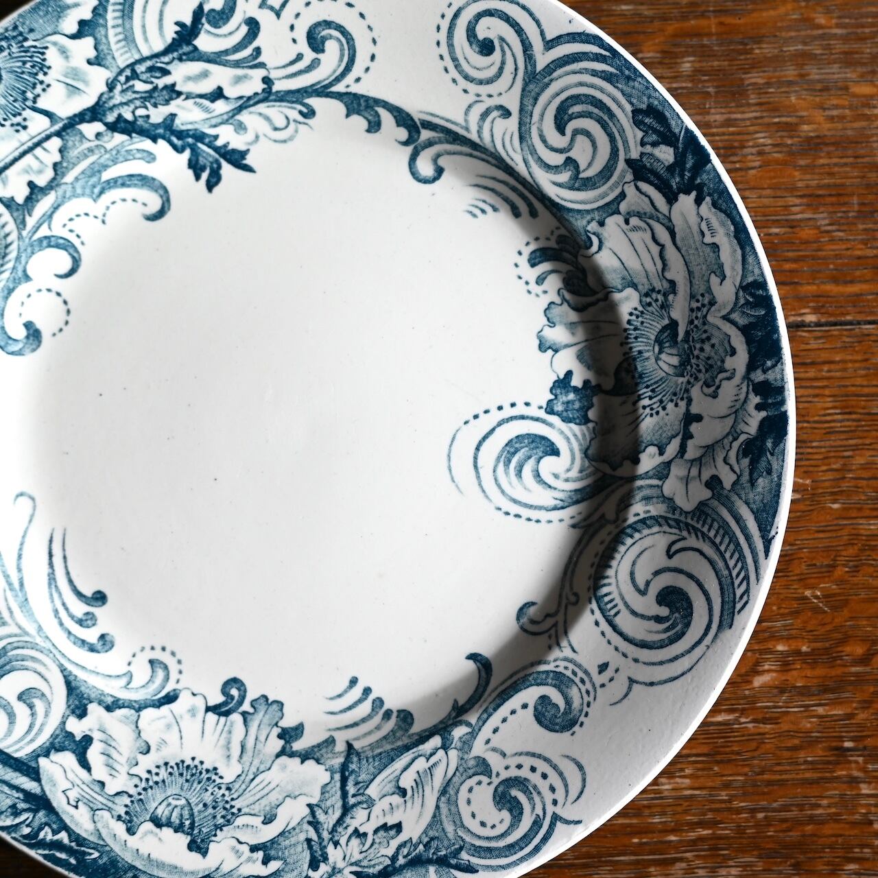 直径が約240mmのプレートで、ブルーのラインでポピーの花が大きく描かれています。