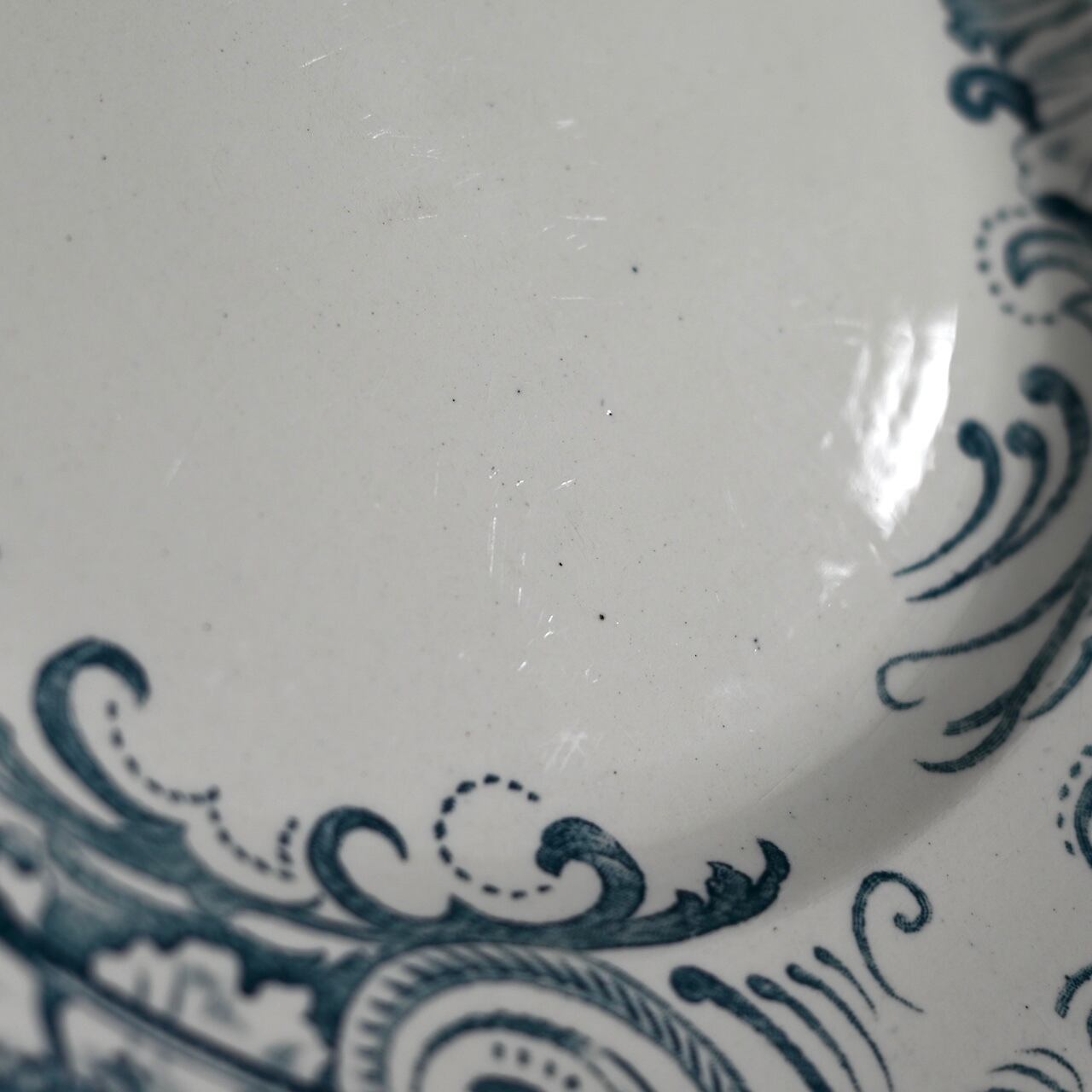 当店で取り扱いをしている食器は80年以上経過しているものが殆どです。古いものになりますので、貫入(釉薬の細かいひび割れ)やカトラリーによる傷、シミや汚れ、小さな欠けなどがあるものもございます。なるべく細かく写真を撮っておりますが、撮りきれない部分や水を含んで現れる貫入などもありますので、神経質な方や新品のようなクオリティーを求めるお客様には不向きな商品になっております。