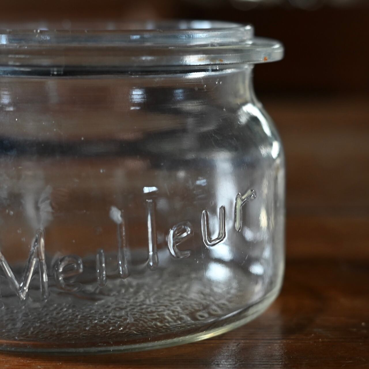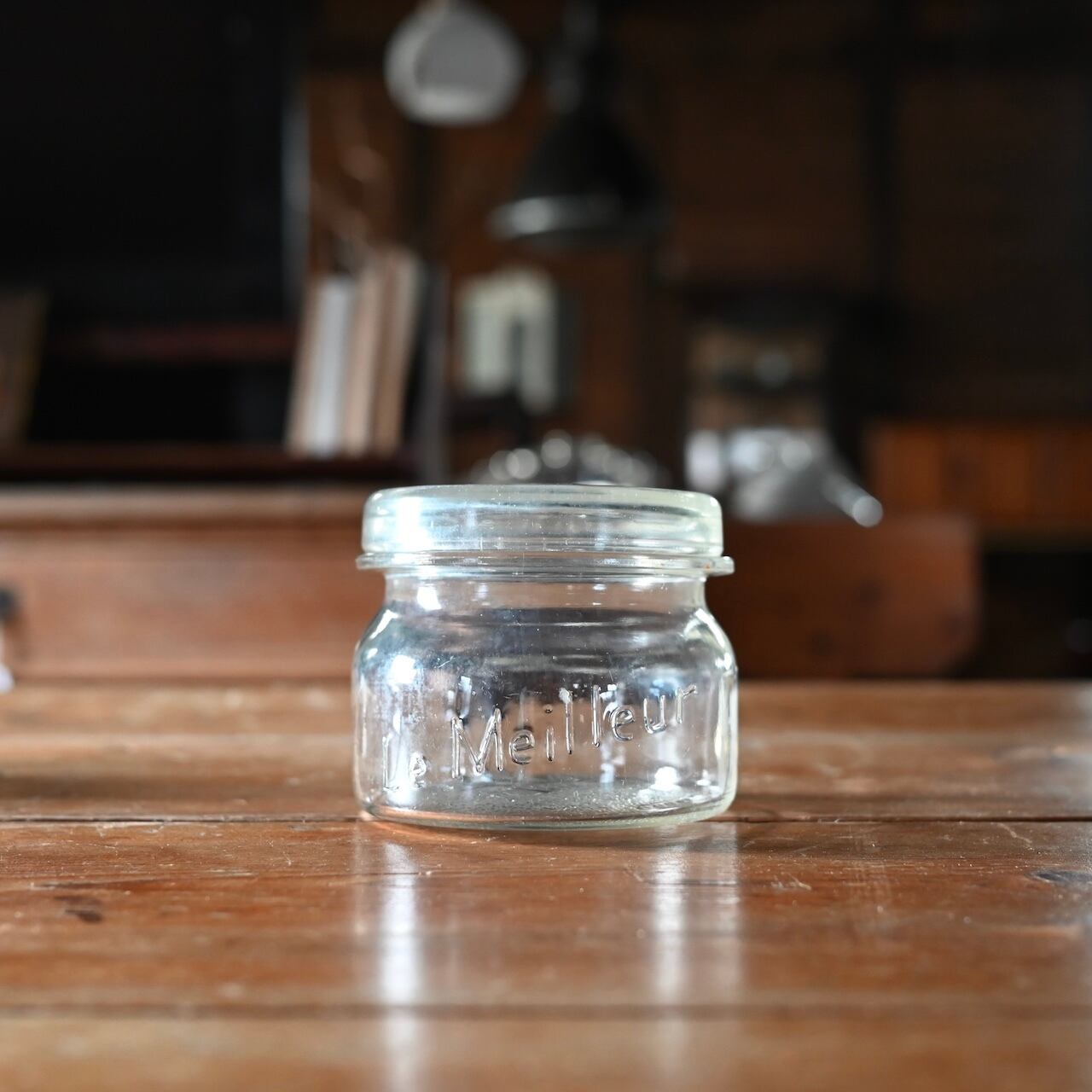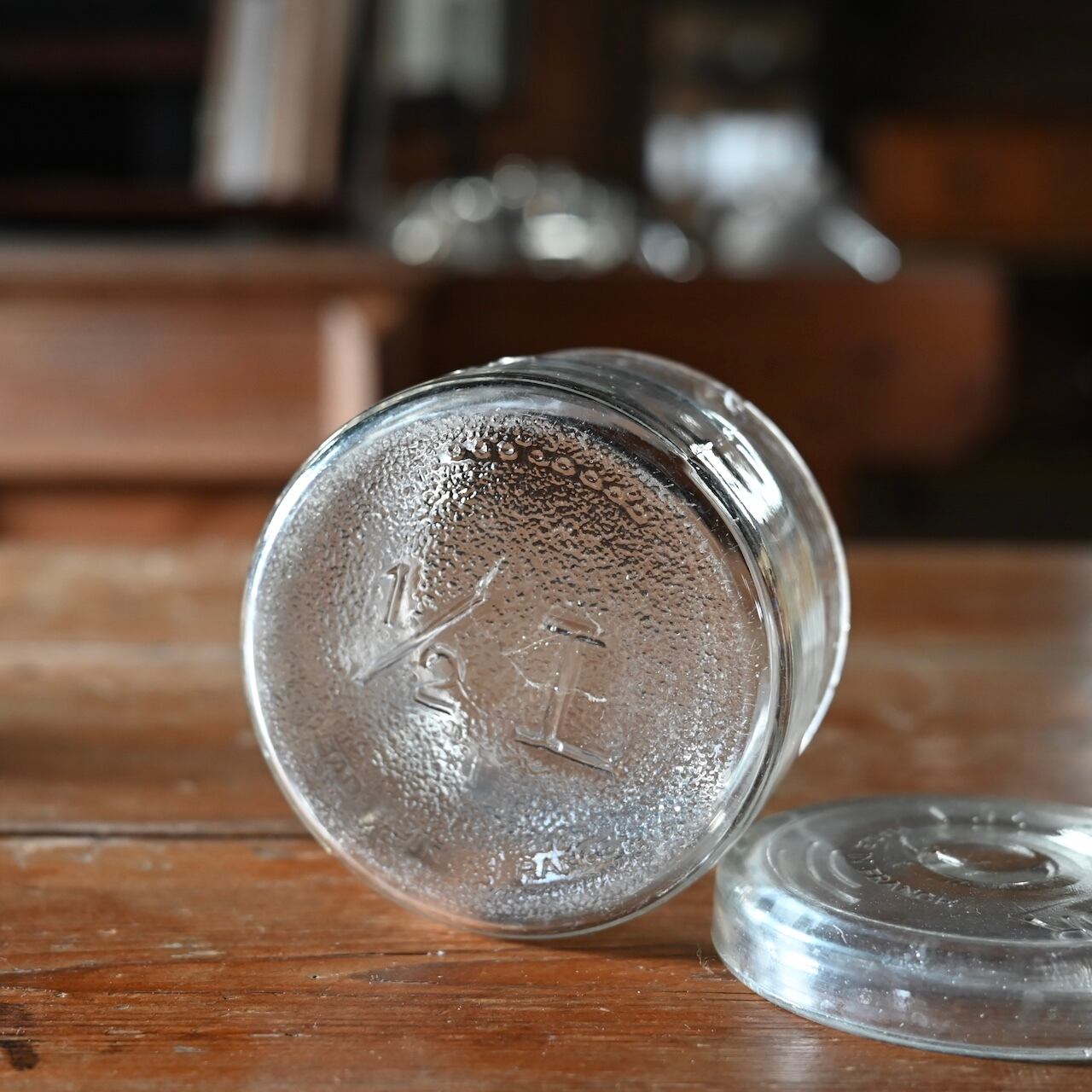 ぽってりした蓋付きの可愛いガラスのキャニスターです。