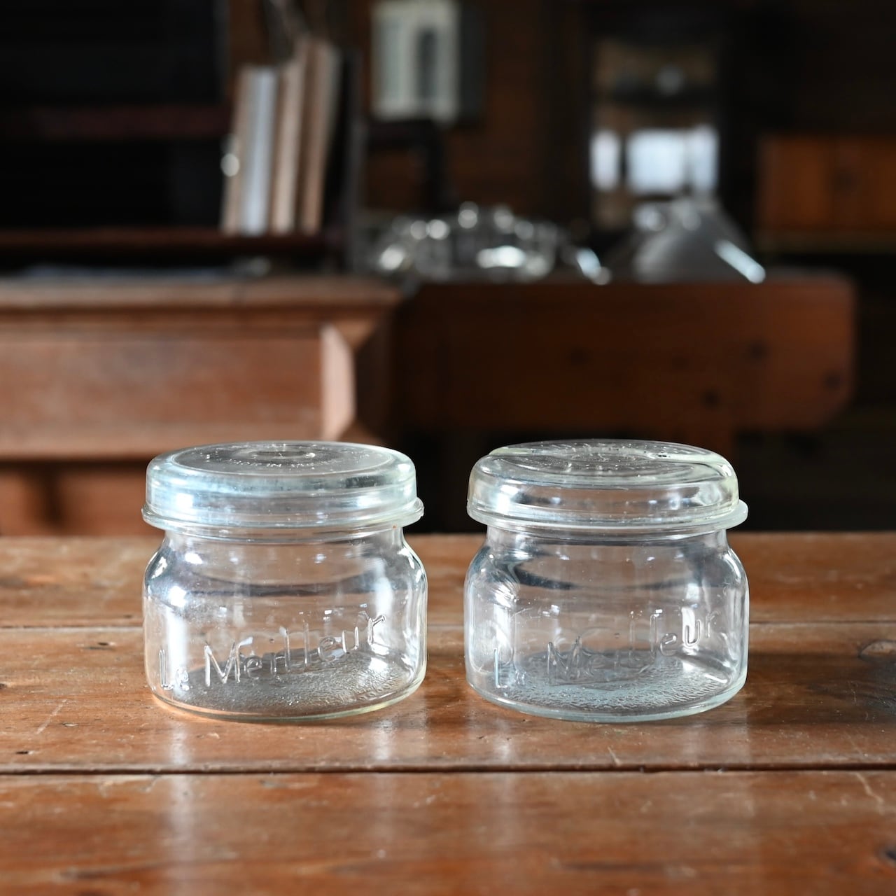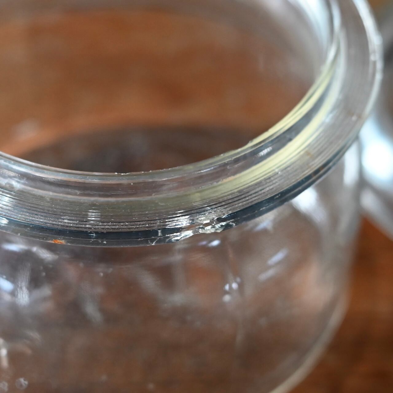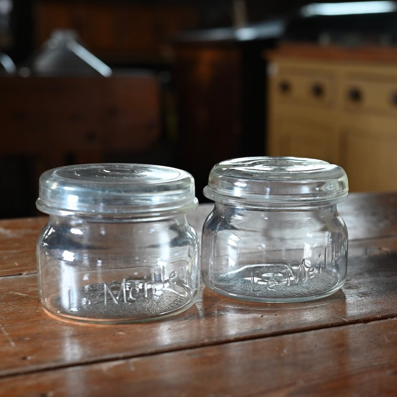 ぽってりした蓋付きの可愛いガラスのキャニスターです。