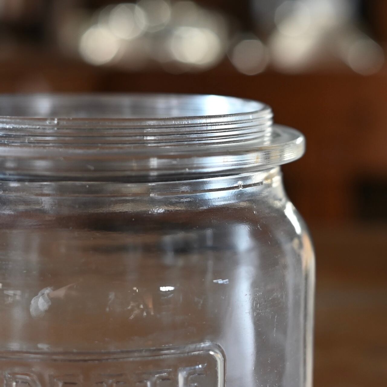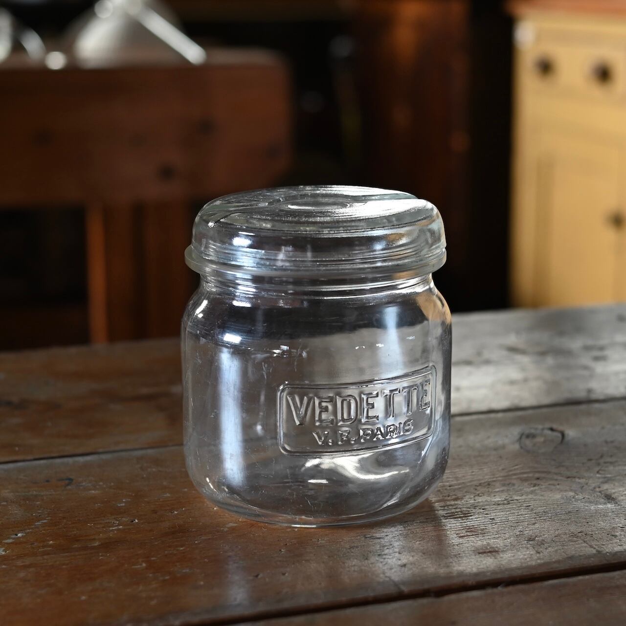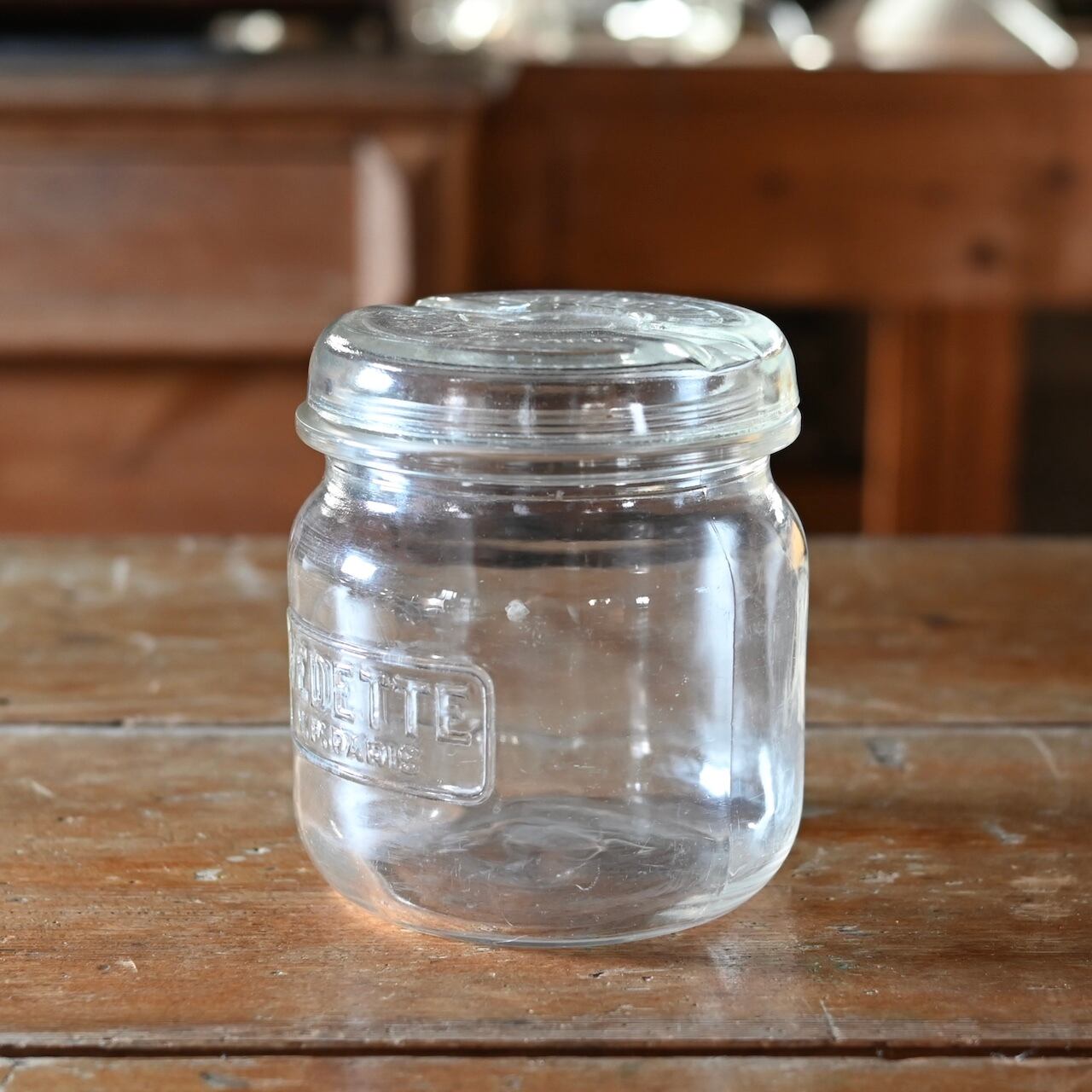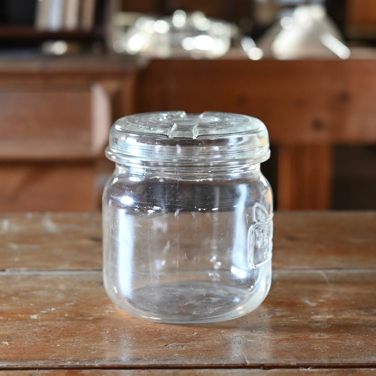 ぽってりした蓋付きの可愛いガラスのキャニスターです。