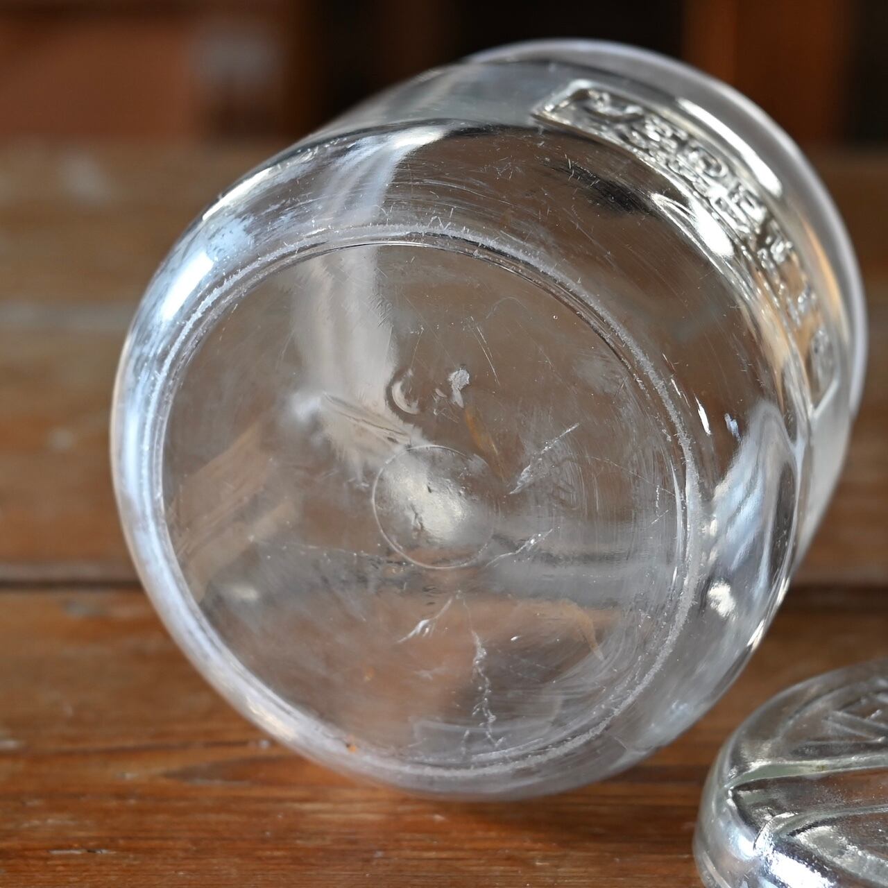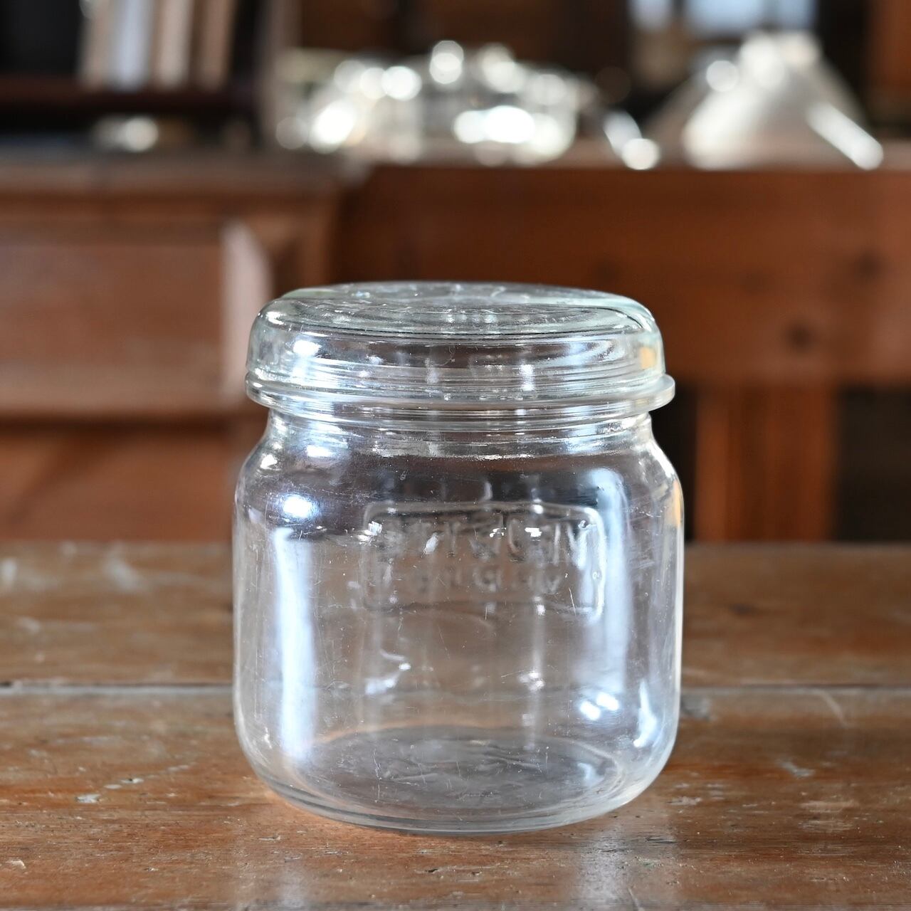 本体と蓋にロゴが入っていて欠けやくすみなどが多数あり、アンティークならではの魅力が詰まっています。