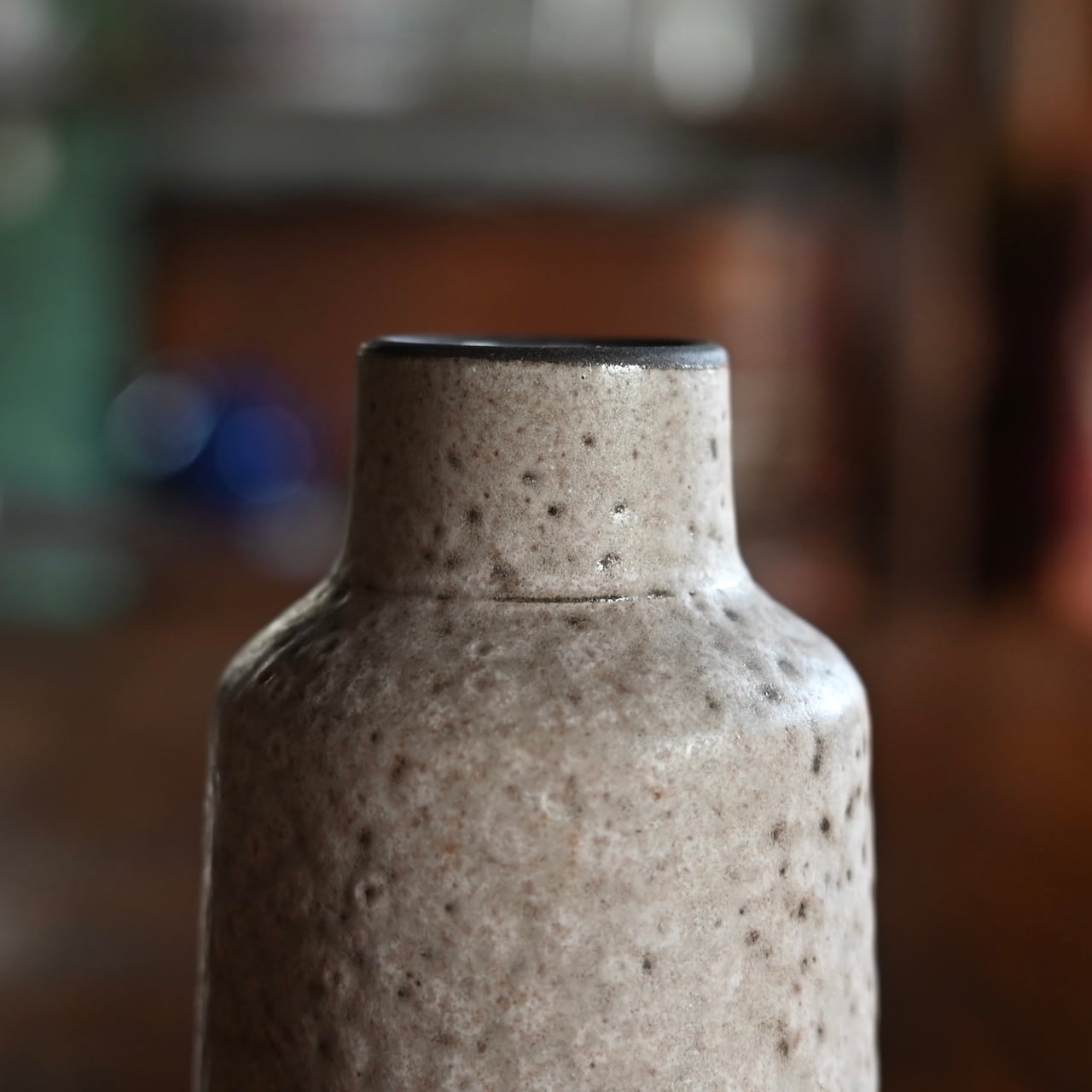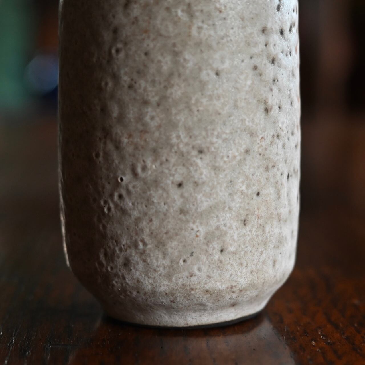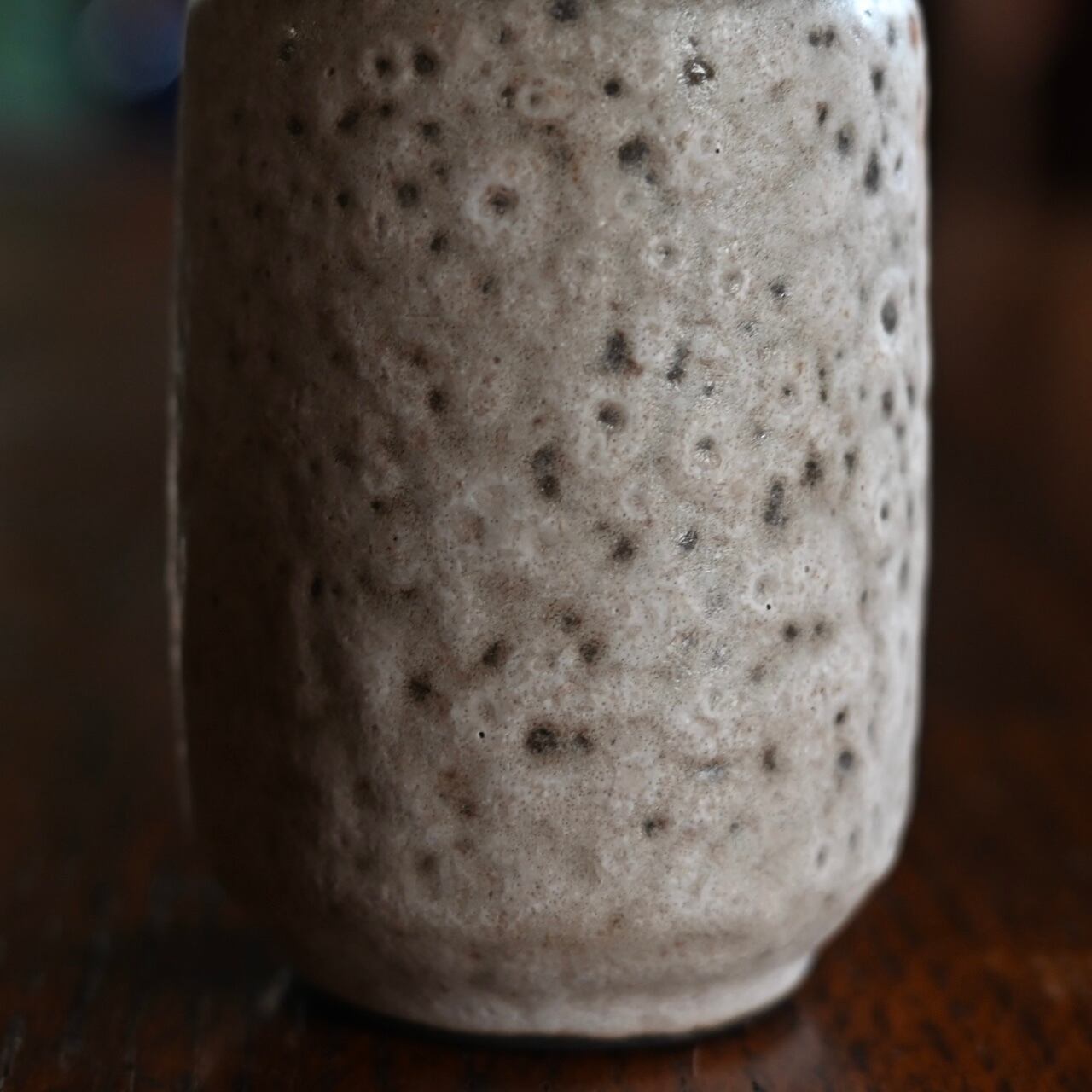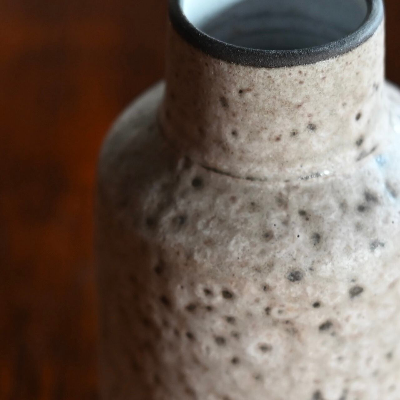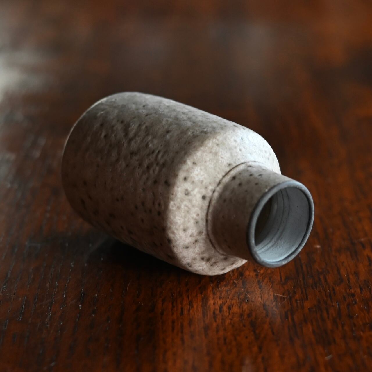 ホワイトとグレーの混ざった落ち着いた雰囲気のフラワーベースで、小ぶりなサイズなので飾る場所を選びません。