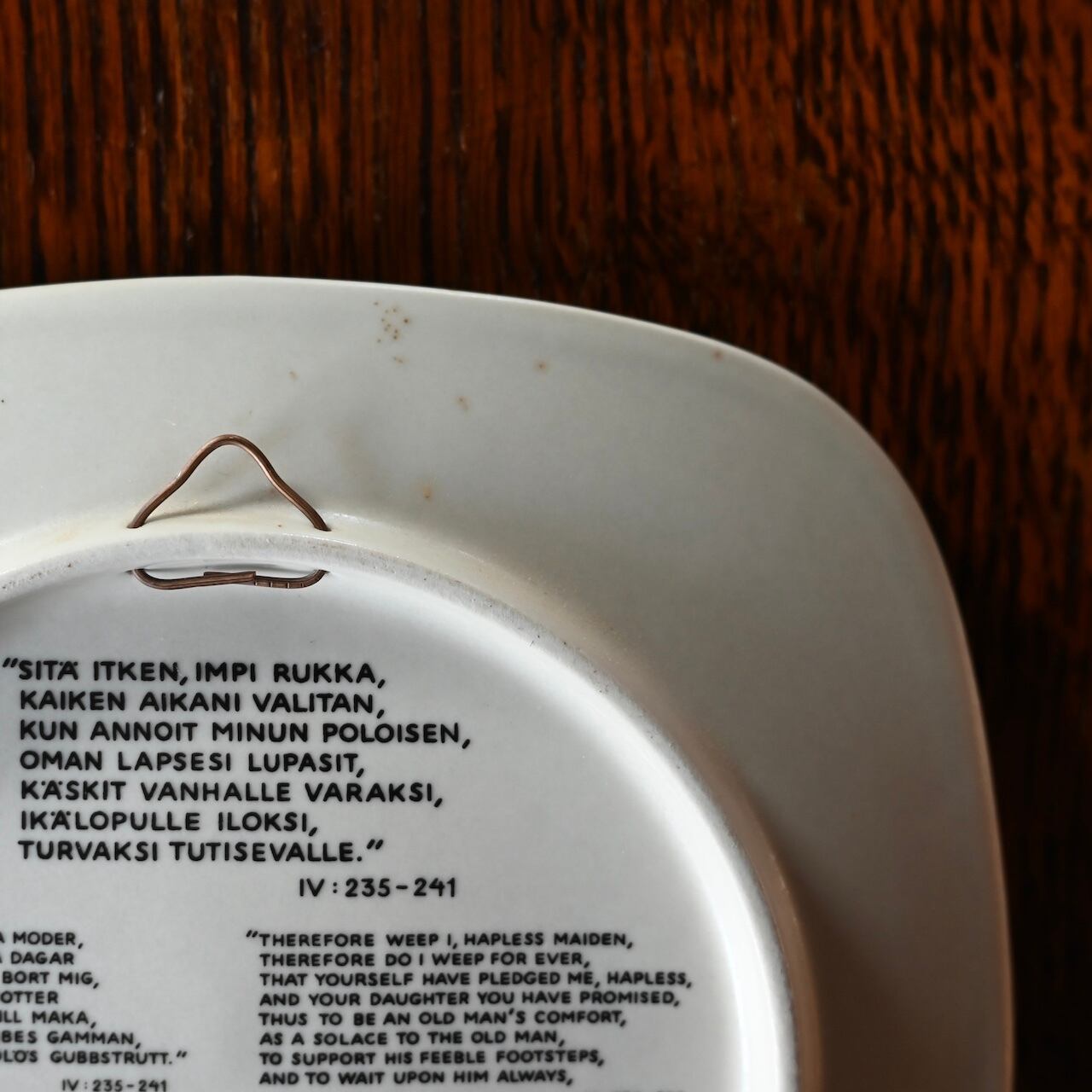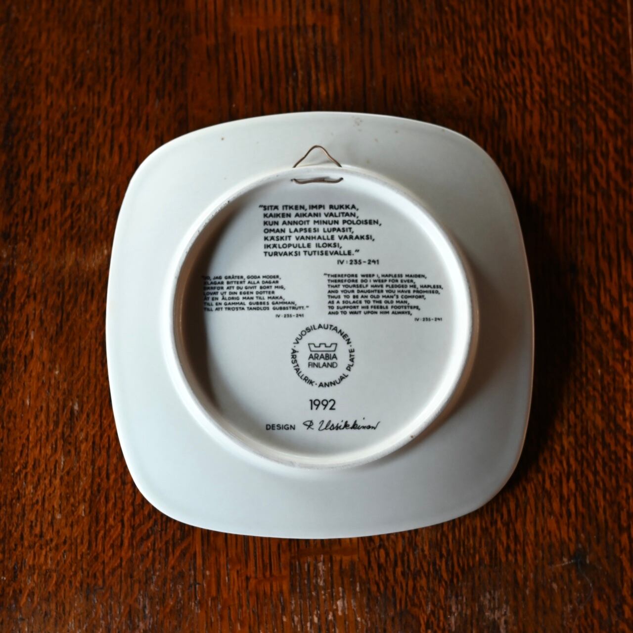 1976年〜1999年の間にデザイナーの"Raija Uosikkinen(ライヤ・ウオシッキネン) "がデザインし、24種類作られたプレートで、フィンランドの神話を描いた民族叙事詩"Kalevala(カレワラ)"のワンシーンが描かれています。