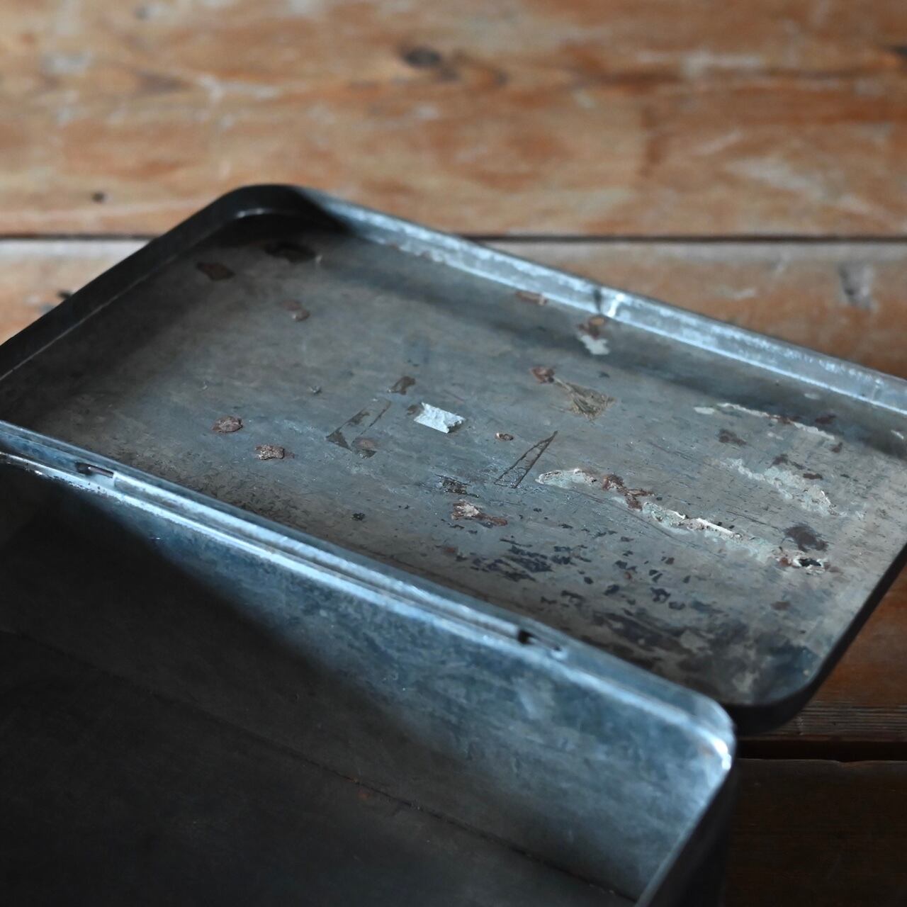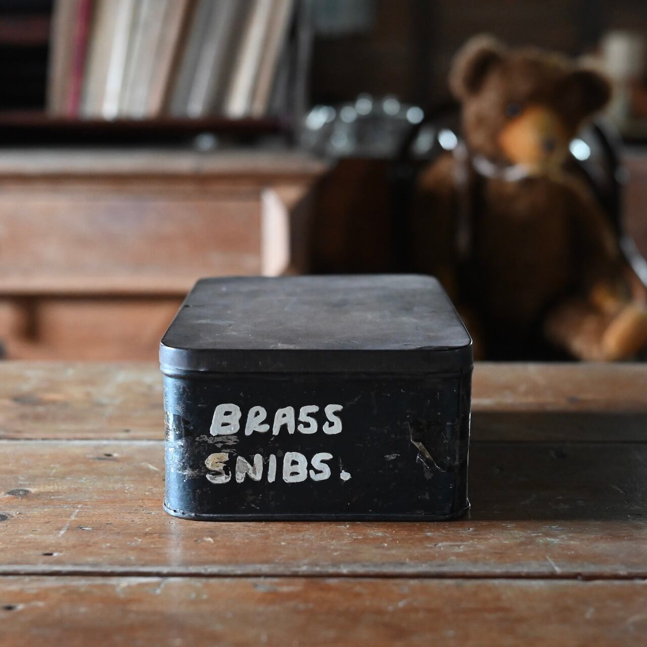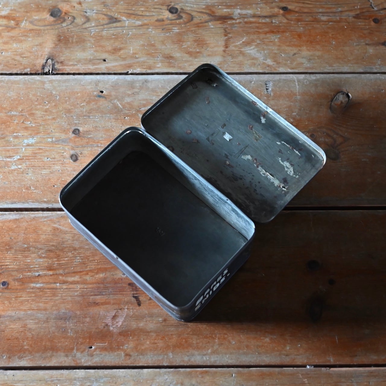 傷などのダメージの雰囲気がかっこいいボックスで、側面には「BRASS SNIBS.」と書かれていて、パーツ入れとして使われていたと思われます。
