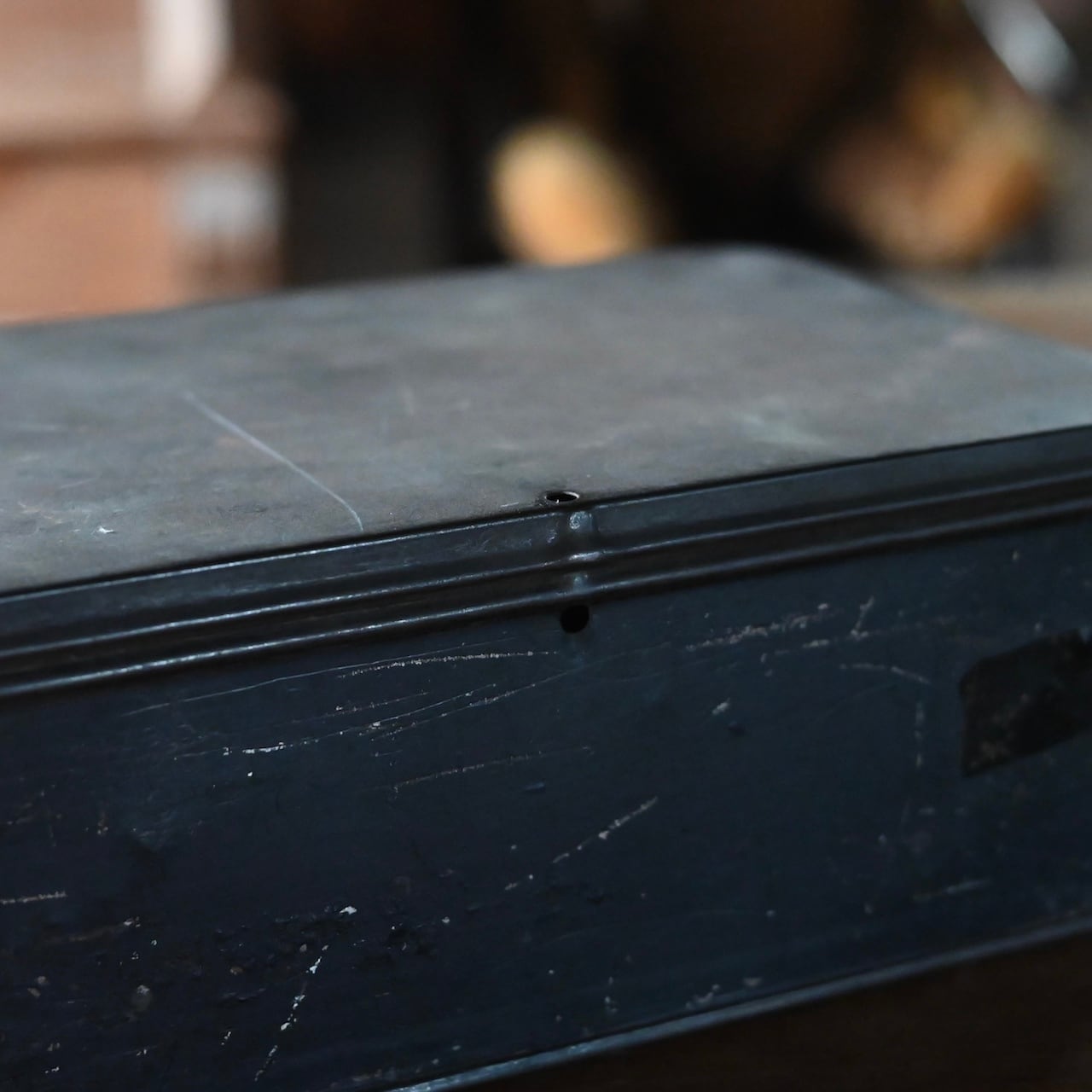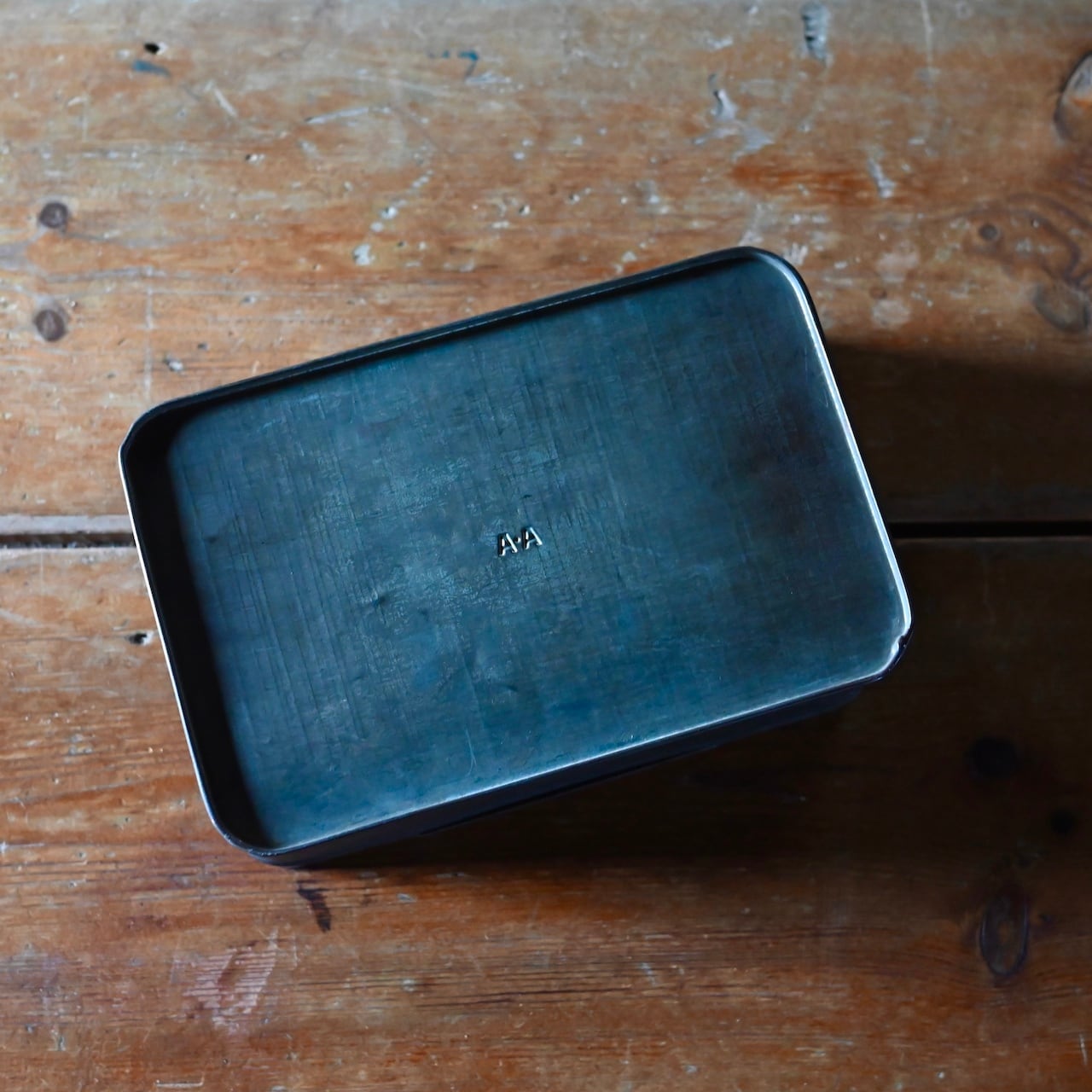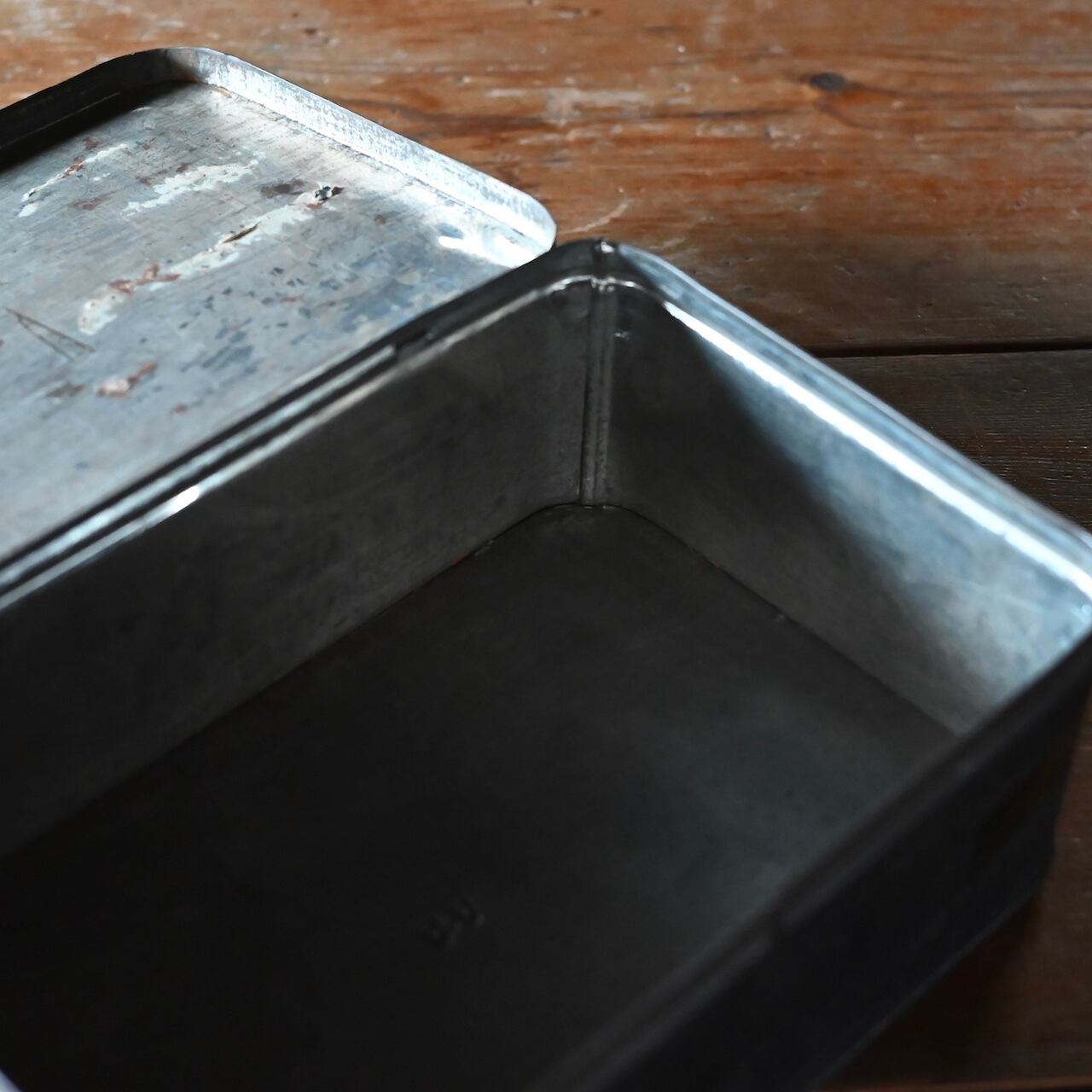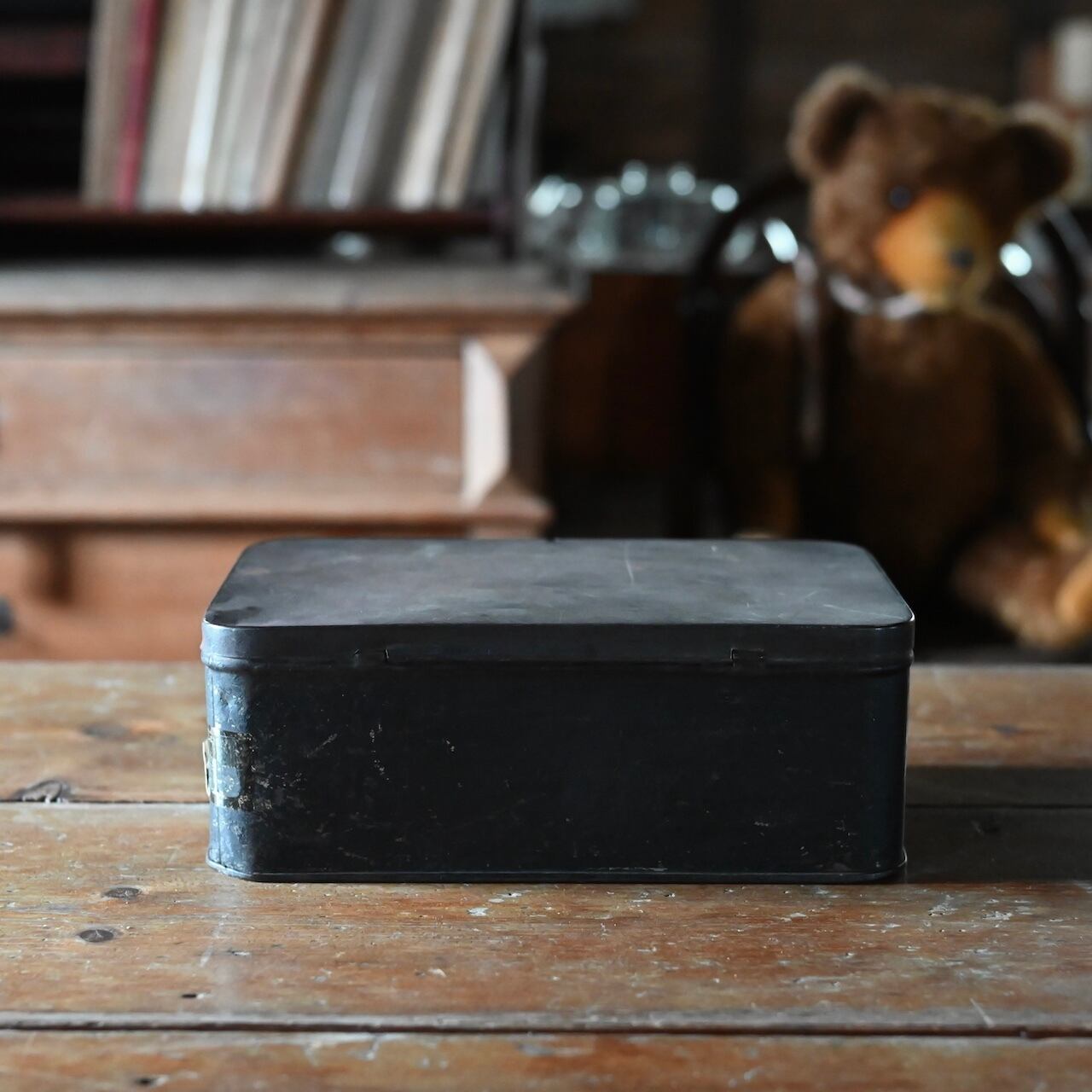 傷などのダメージの雰囲気がかっこいいボックスで、側面には「BRASS SNIBS.」と書かれていて、パーツ入れとして使われていたと思われます。
