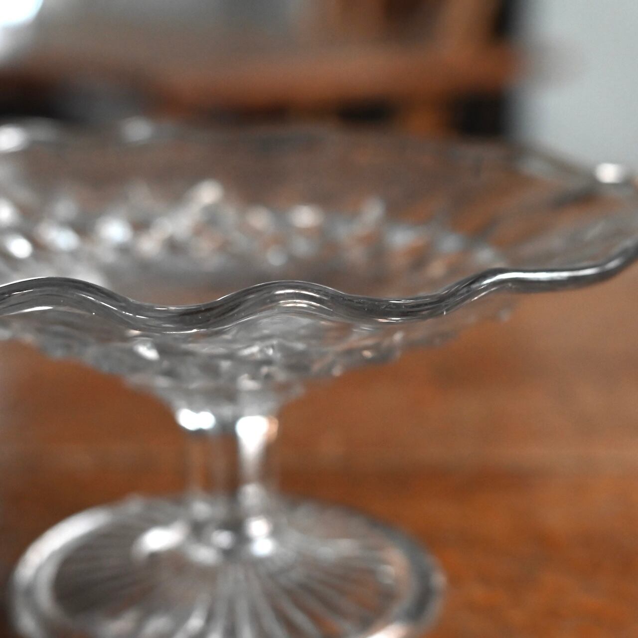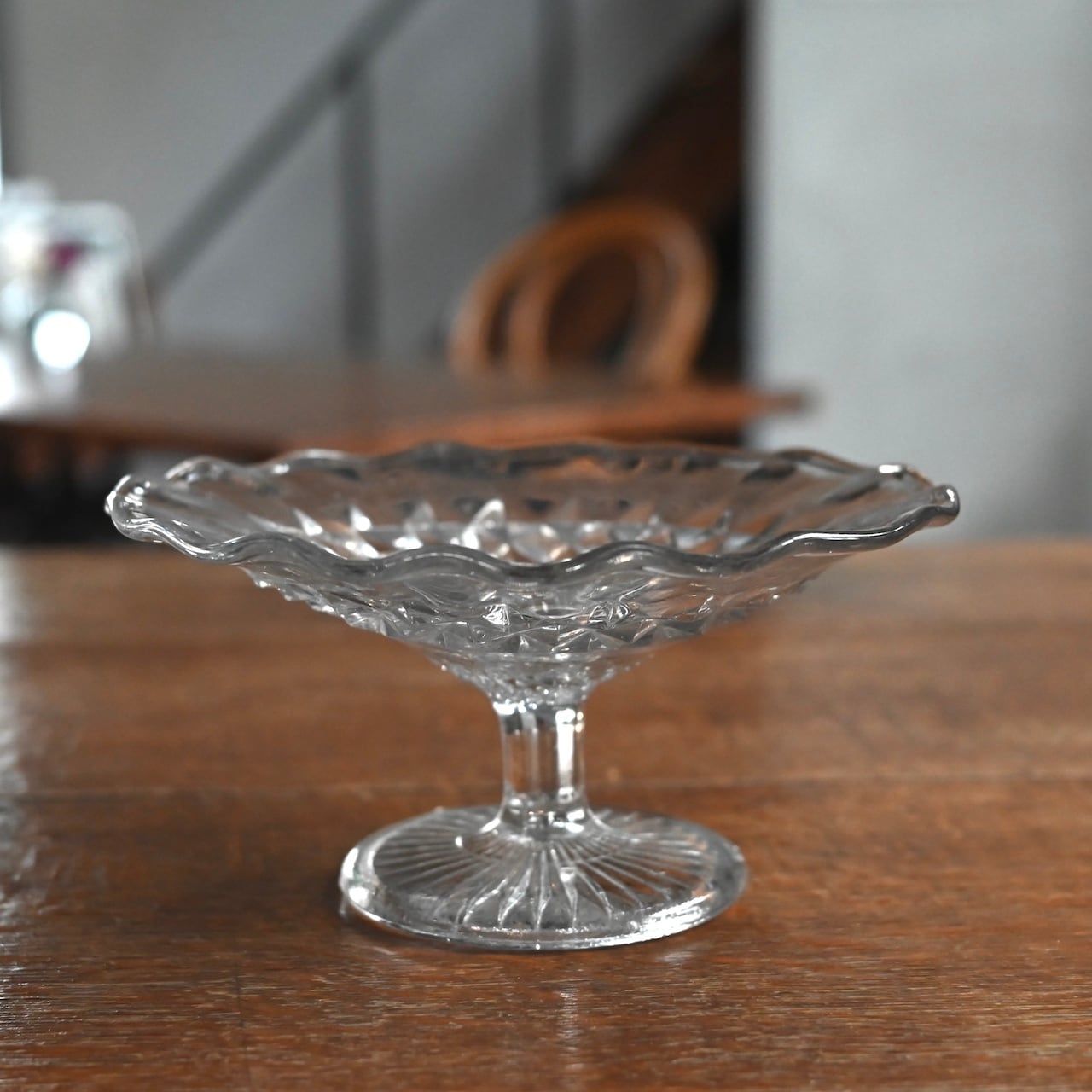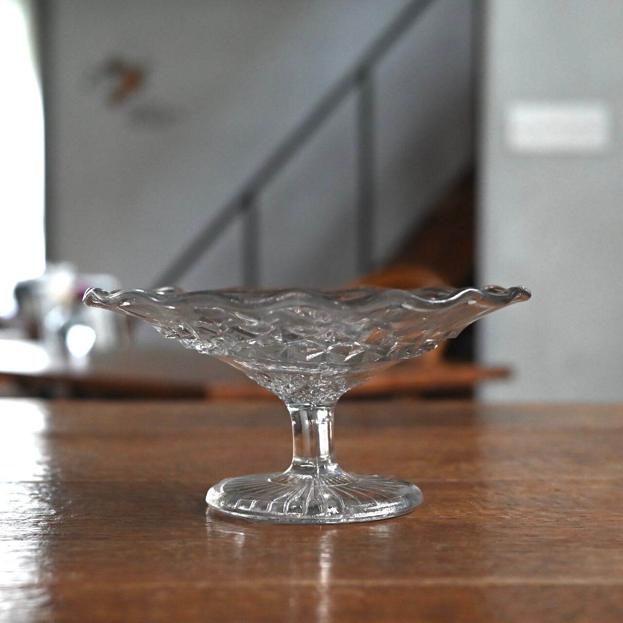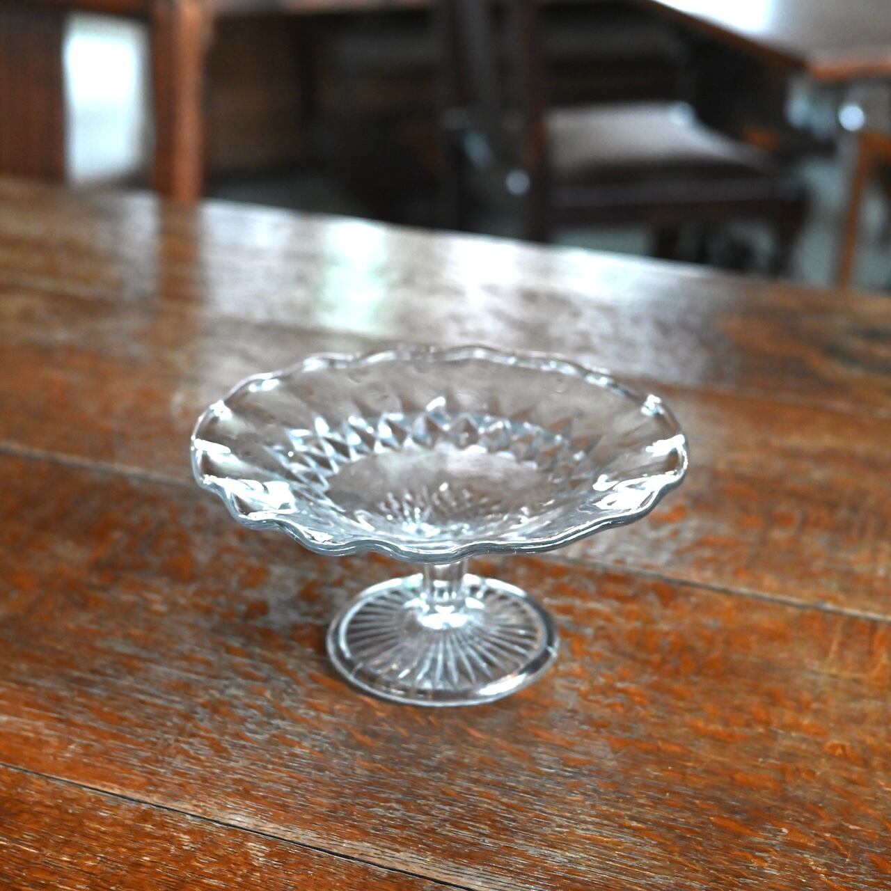 イギリス製のヴィンテージのガラスコンポート。