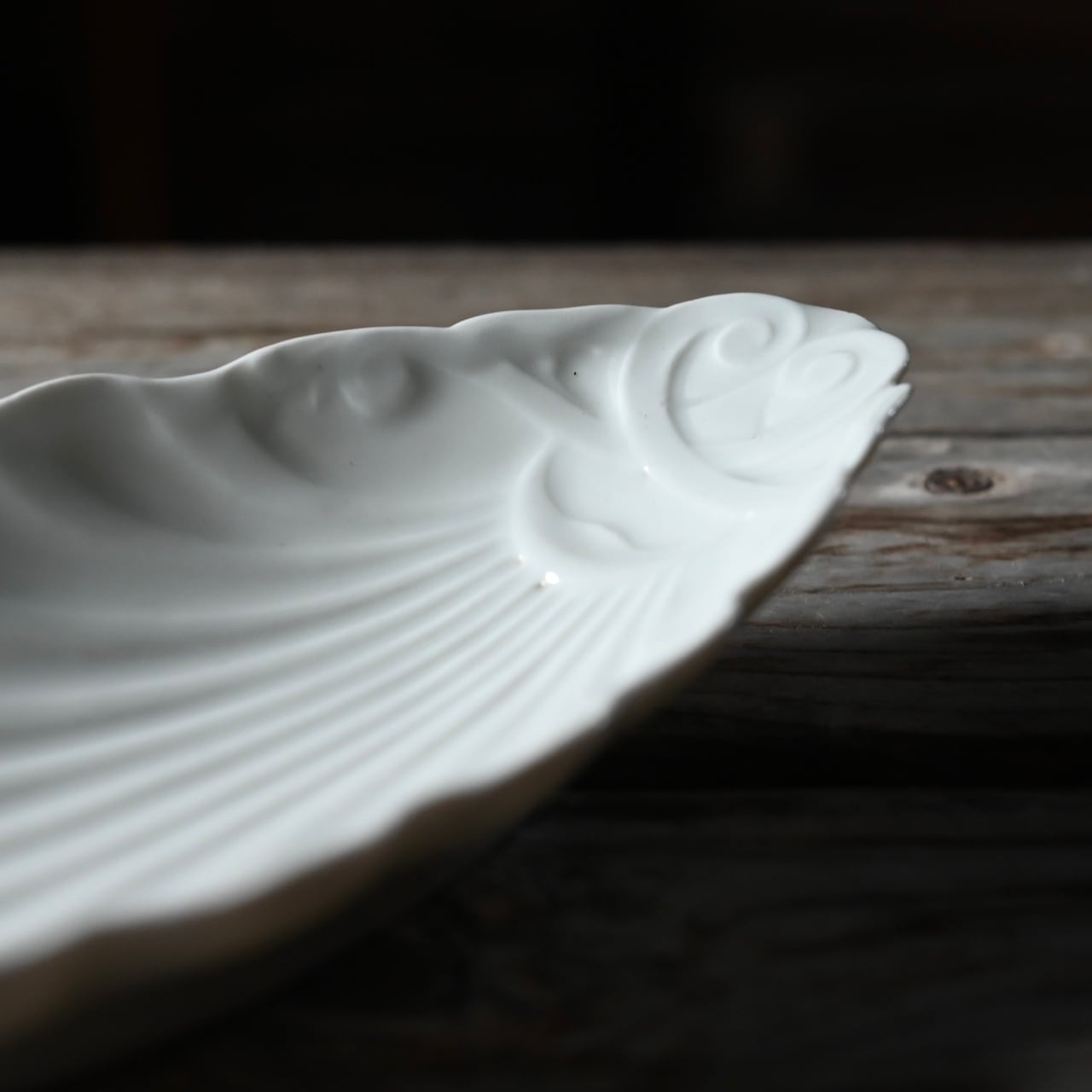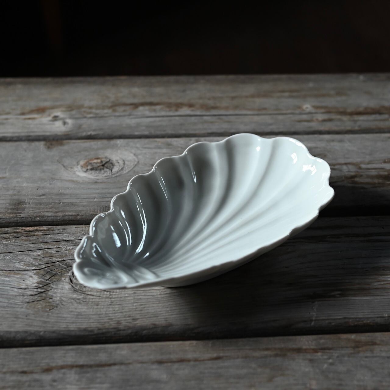 貝の形をしたプレートで光の当たり具合で模様に影ができ、上品でエレガントな雰囲気です。