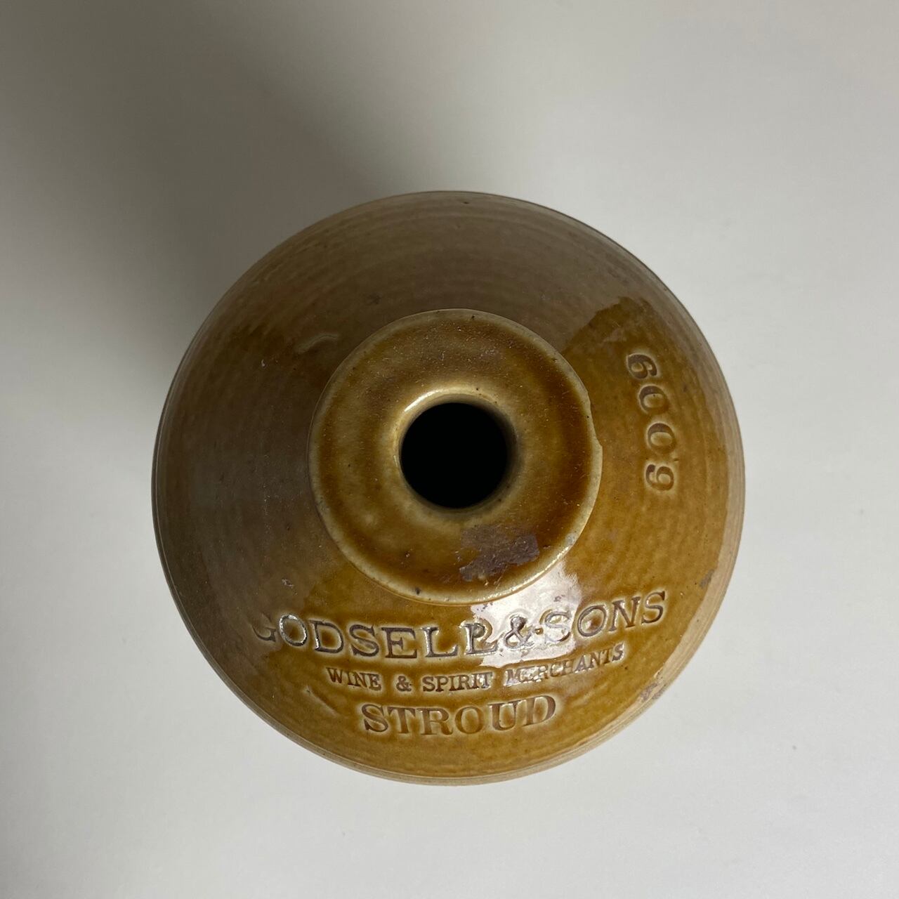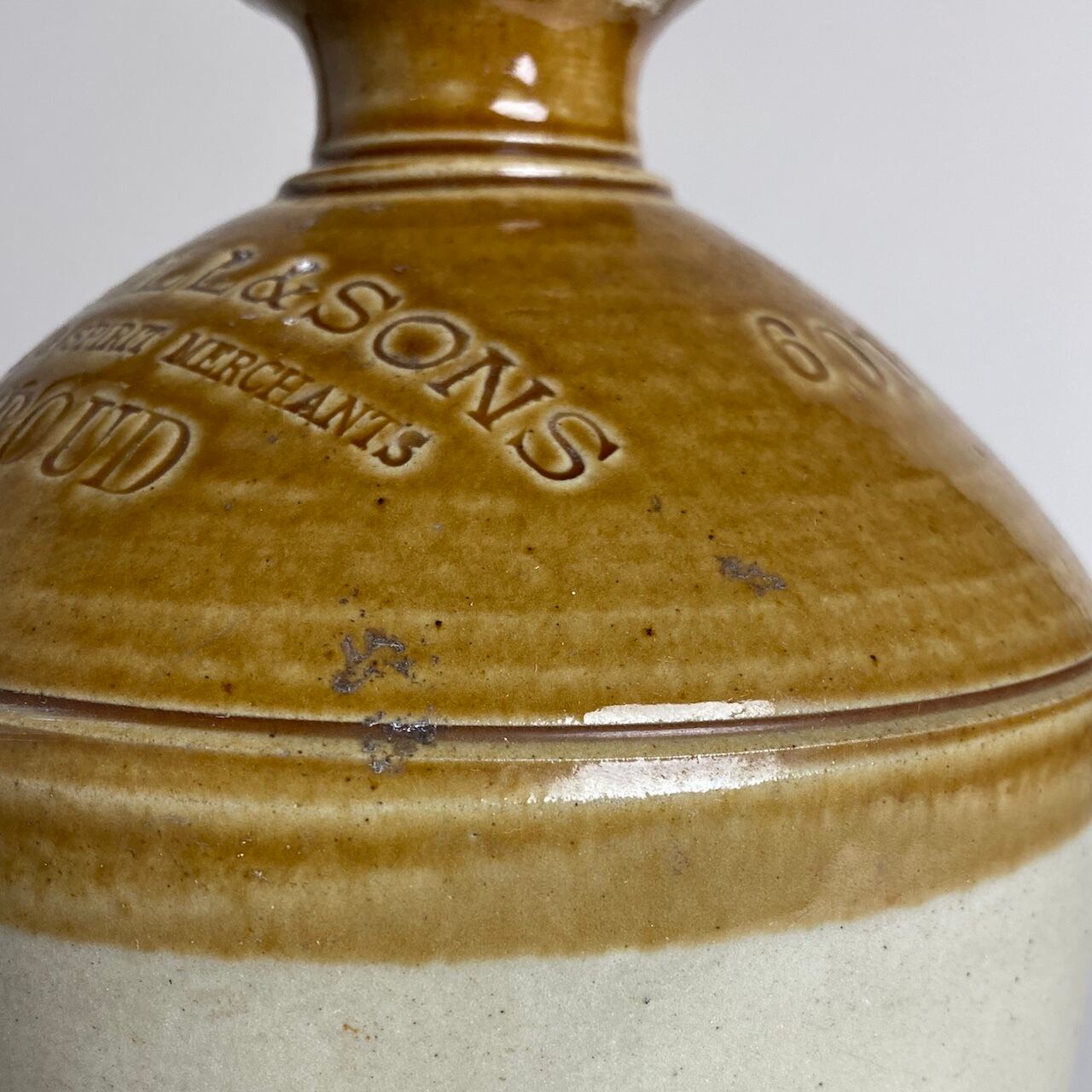 今でもイギリスに行くとガラスボトルに入れられたものが売られていますが、当時はこのような陶器のボトルに入れられていました。