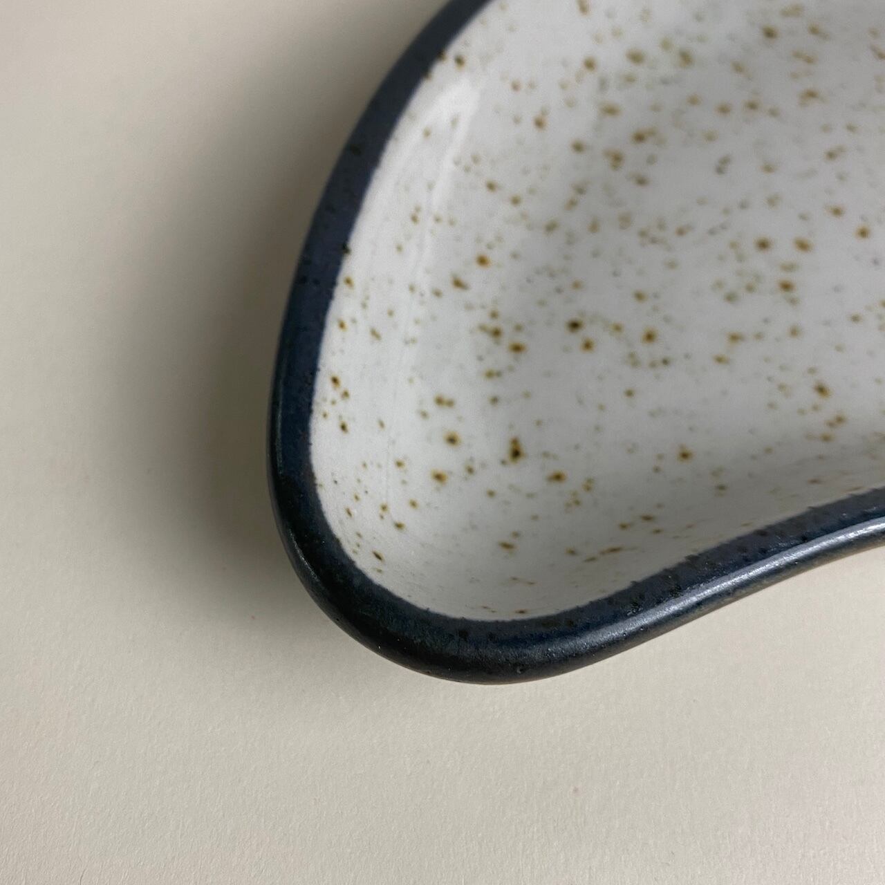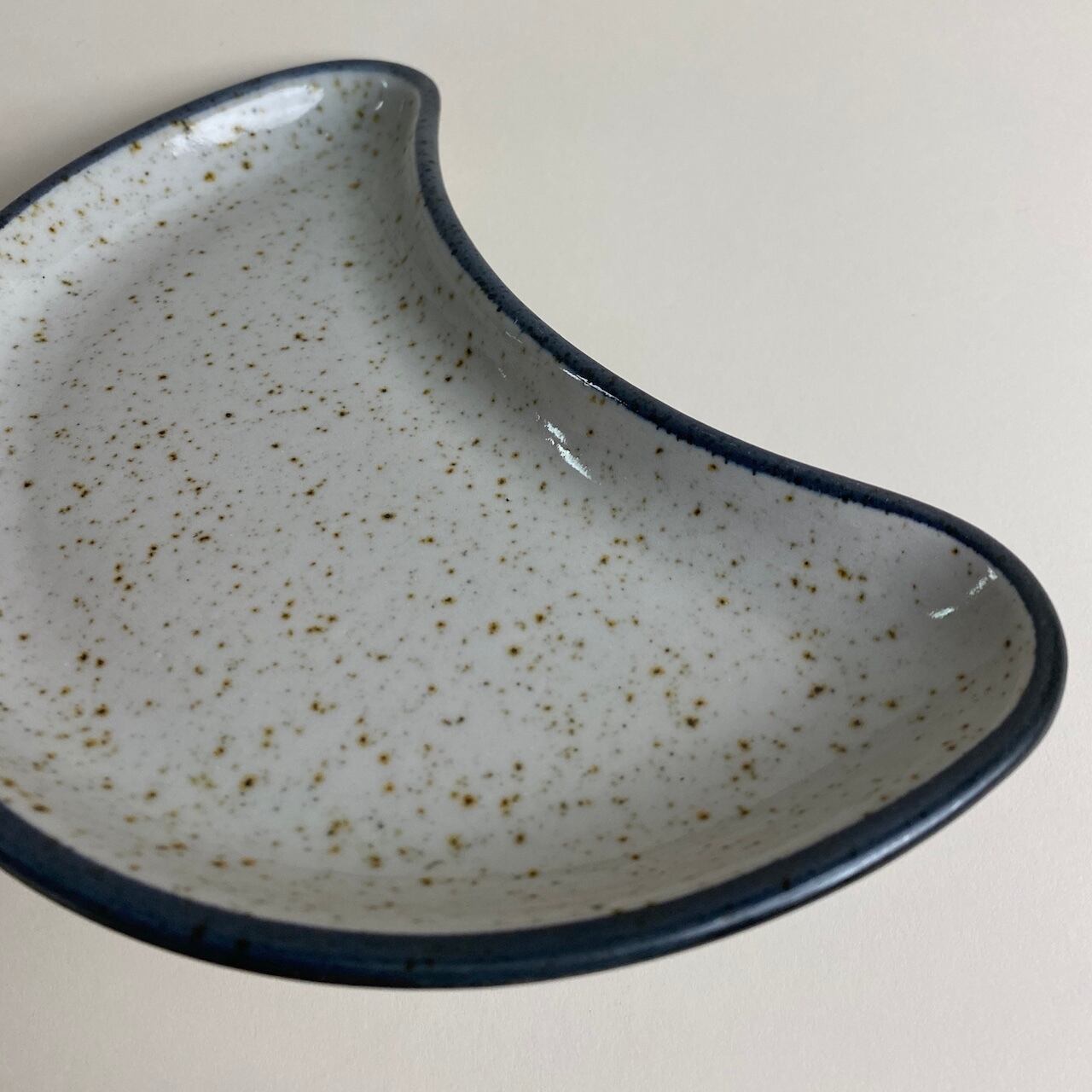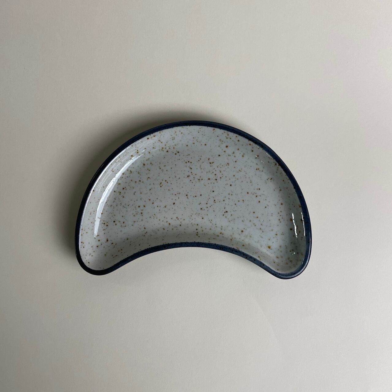 淡いカーキとグレーの、ツートンカラーの三日月型プレートです。