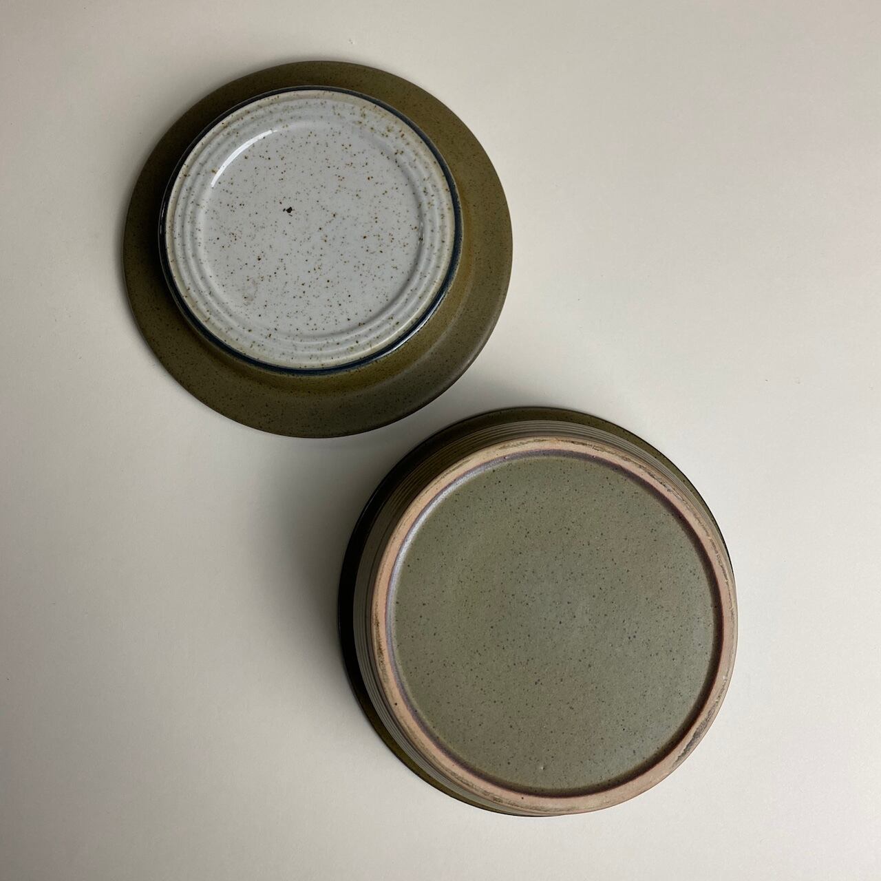 淡いカーキにベージュのラインが入ったシンプルなデザインデザインなので、様々な料理にお使い頂けるマルチな食器です。