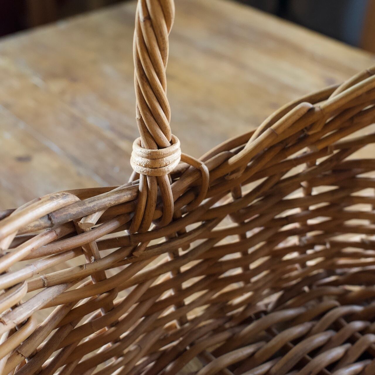 皮付きラタンを一つ一つ丁寧に編み込んだラタンのバスケット。