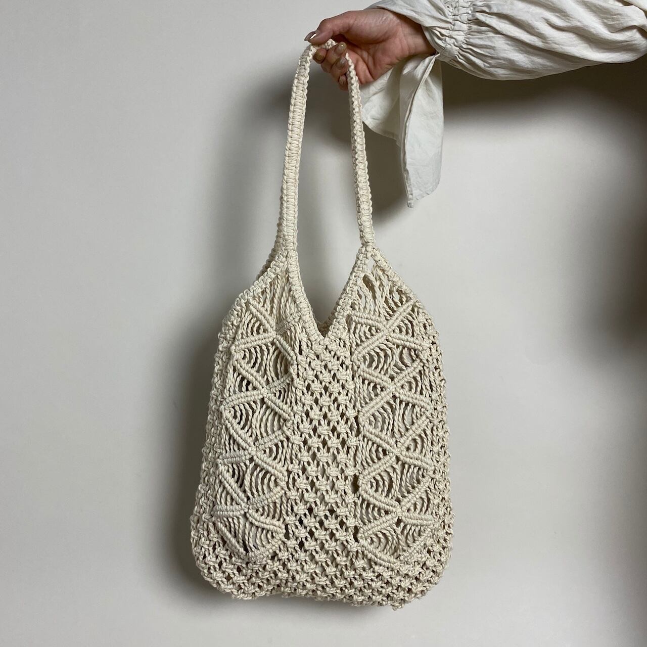 ハンドメイドで作られたマクラメバッグ 。
