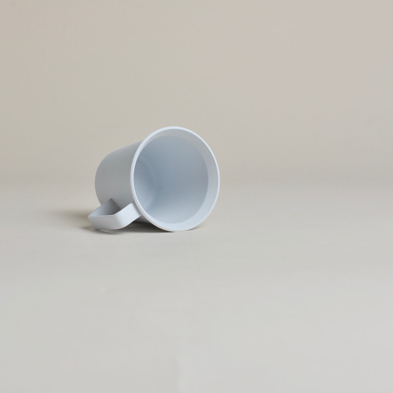シンプルで縁が角ばっているフォルムが特徴的なデザインのマグカップ。