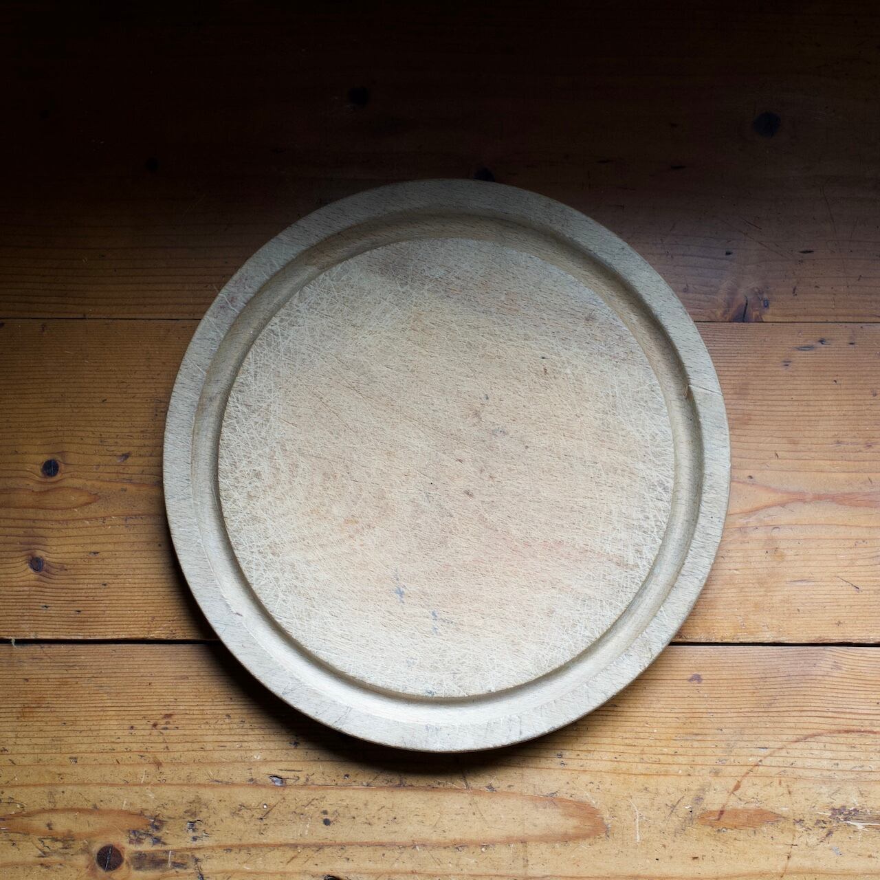 木製の円形ガラスドームベースで、表面は真っ平ではなく、真ん中にいくほど少し窪んでいます。