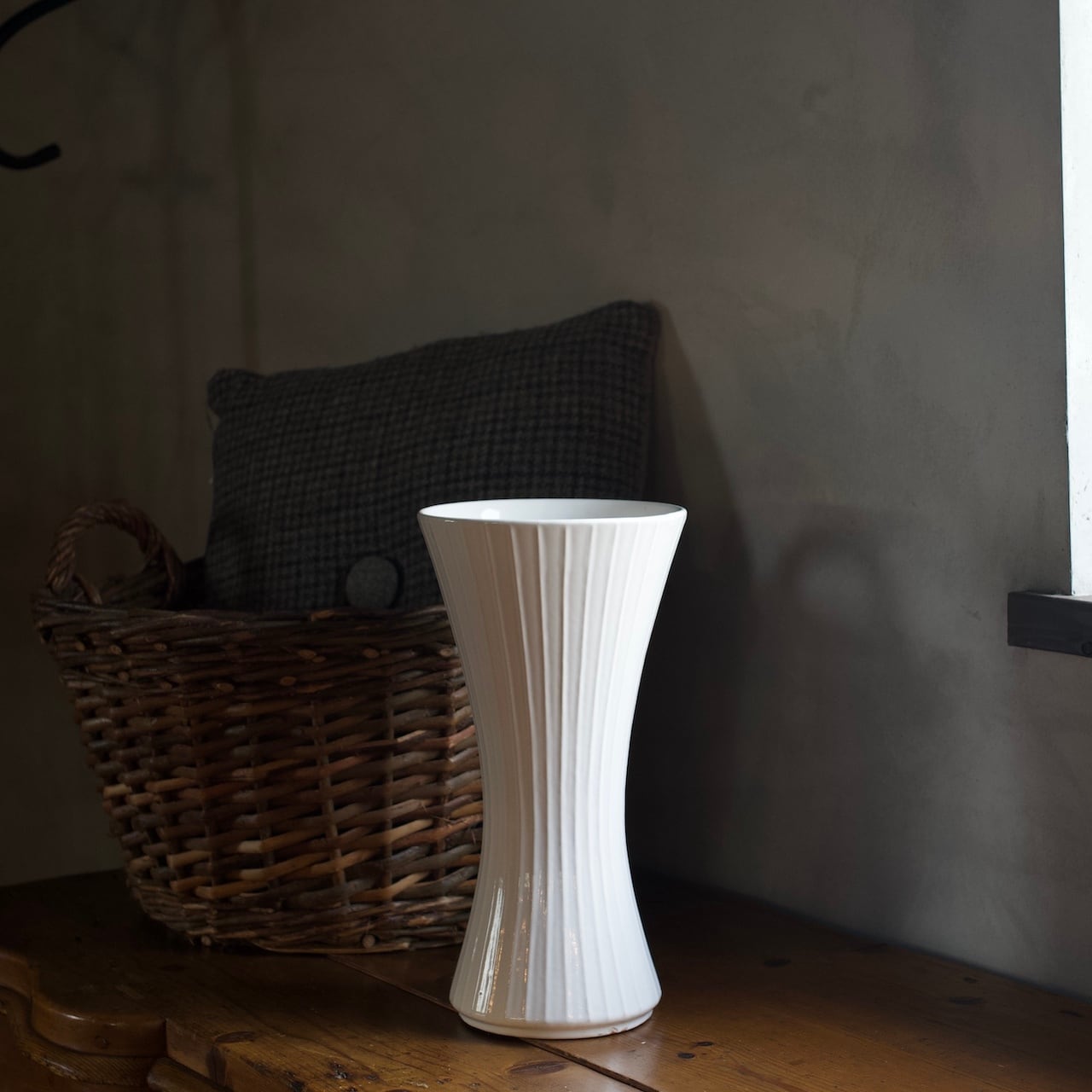 くびれのあるエレガントな雰囲気のフラワーベースです。