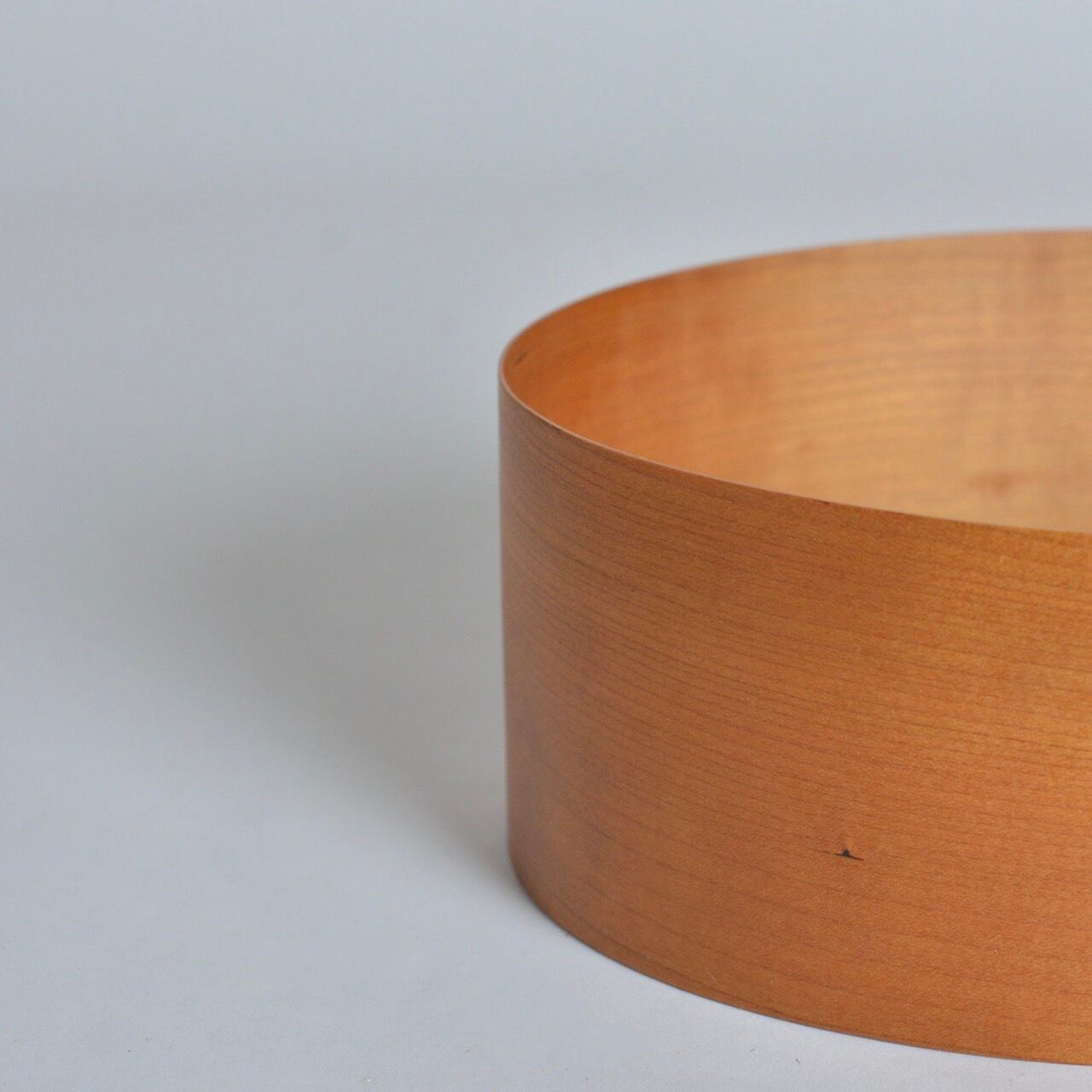 薄くスライスされた木材を曲げて作ったオーバル型のボックスです。