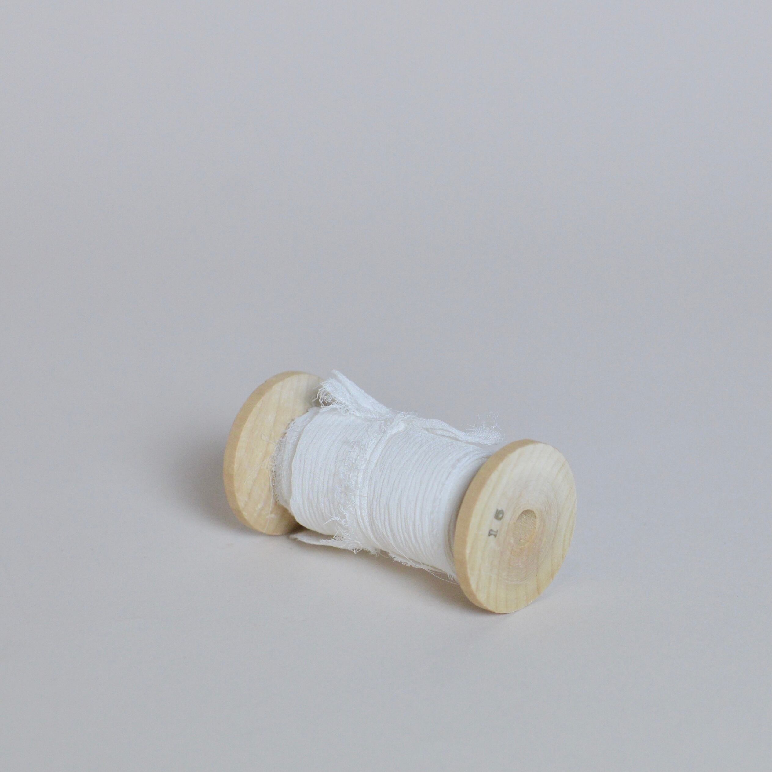 木製の糸巻きに約50mm幅のリボンが、たっぷり1800mm巻かれています。