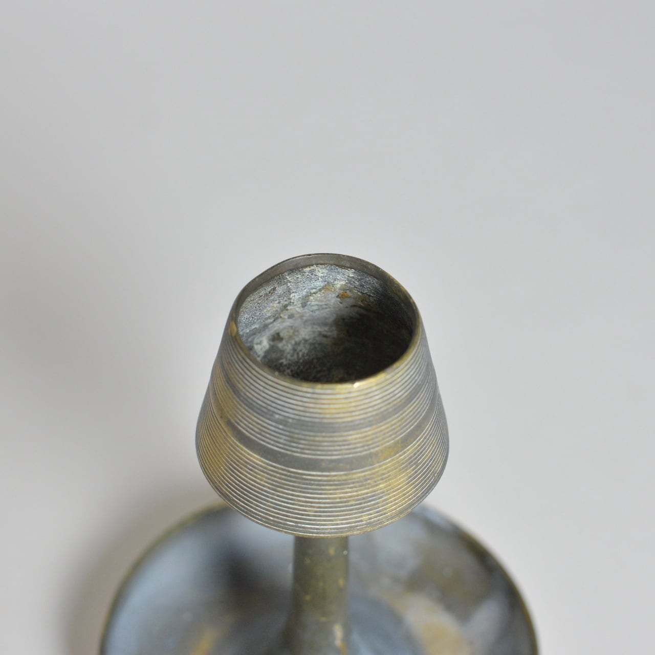 長年の酸化により変化した真鍮独特のくすみや色が、雰囲気のあるキャンドルスタンドです。
