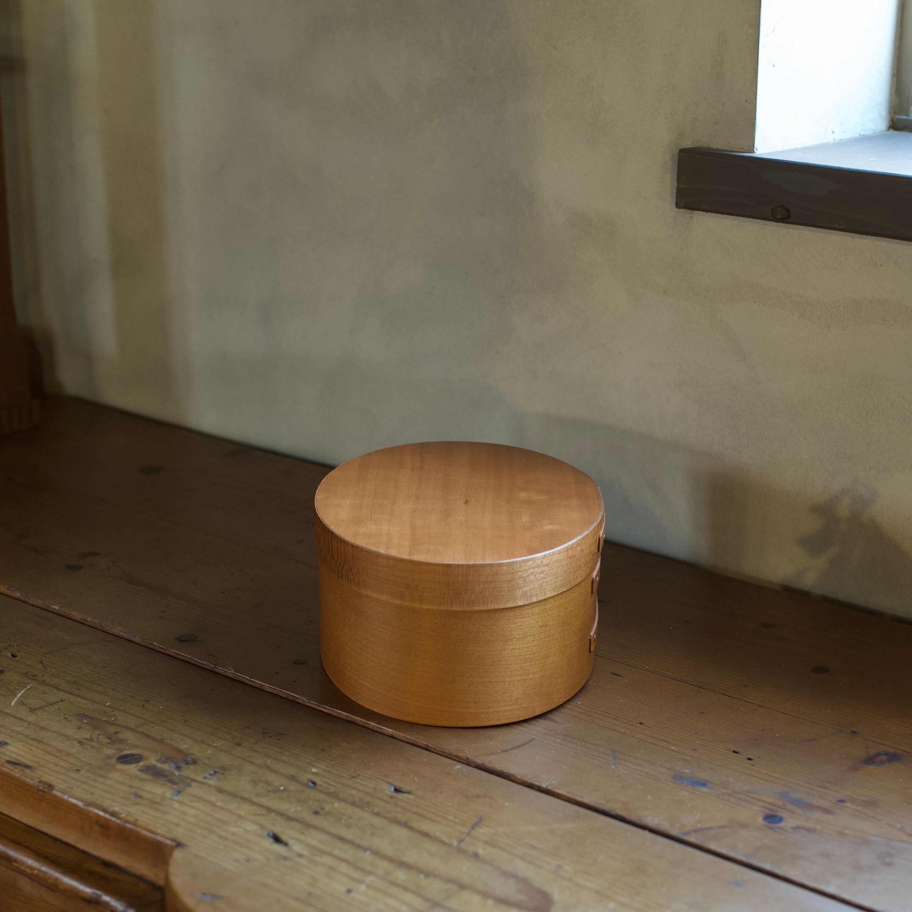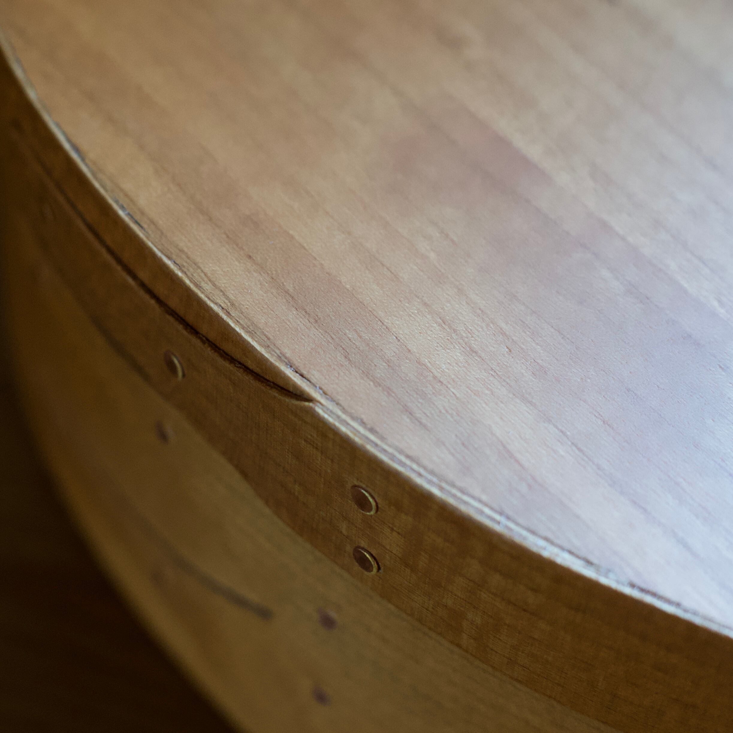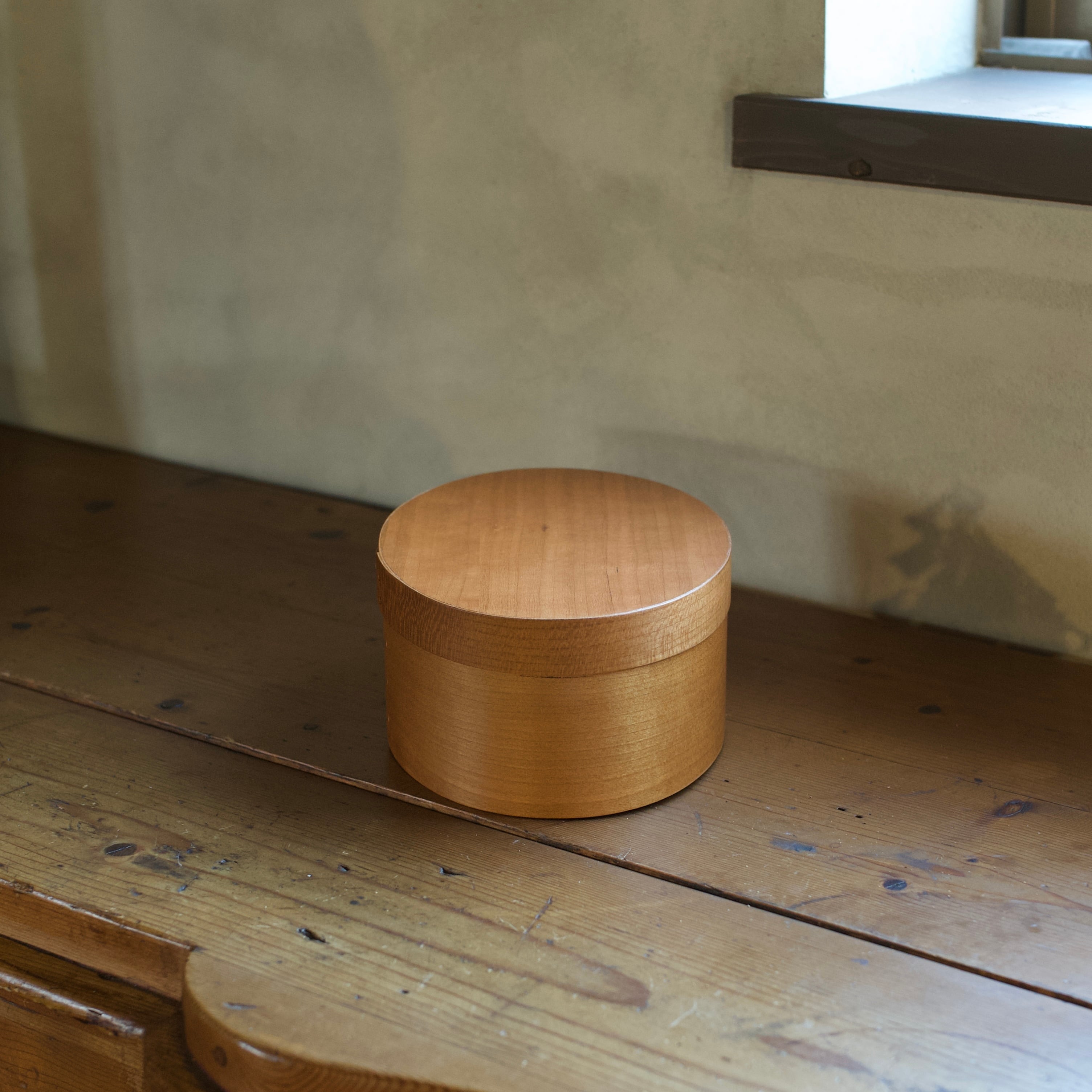 薄くスライスされた木材を曲げて作ったオーバル型のボックスです。