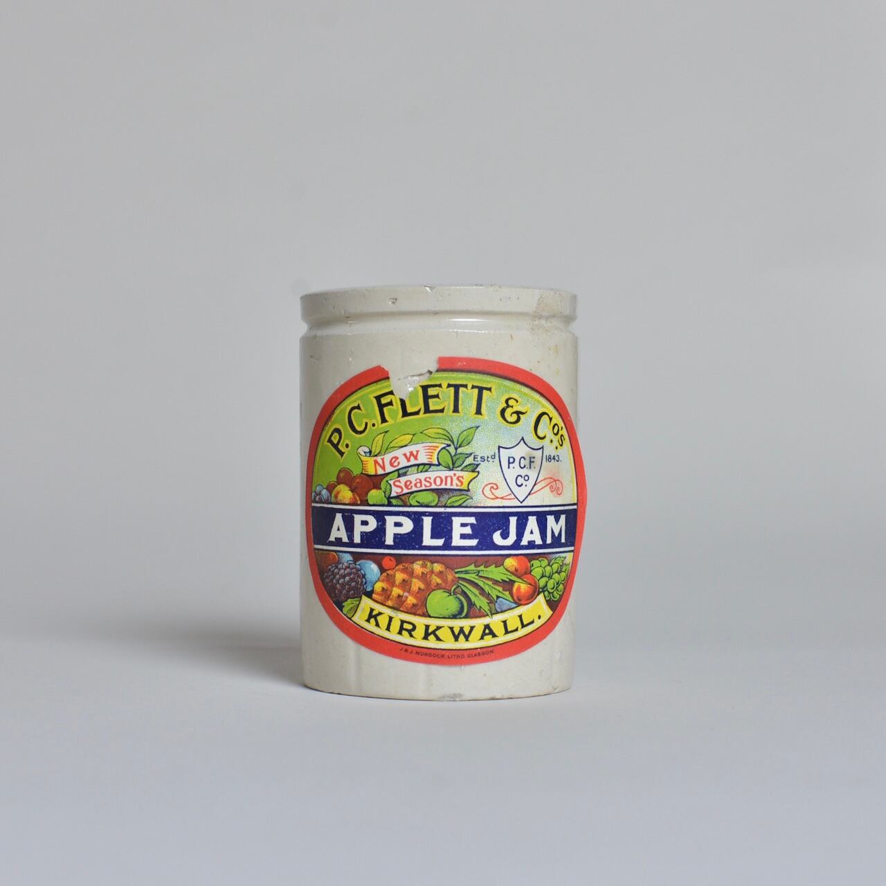 1940年代イギリス製の陶器のジャムボトル。