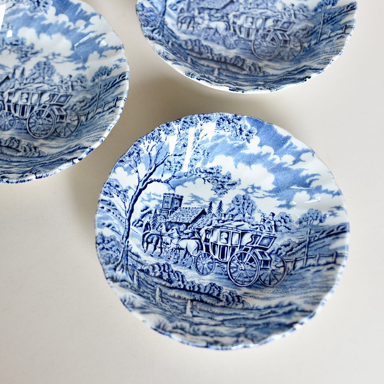 郵便物を運ぶ馬車が描かれていて、イギリスらしい建物や風景が素敵なボウルです。