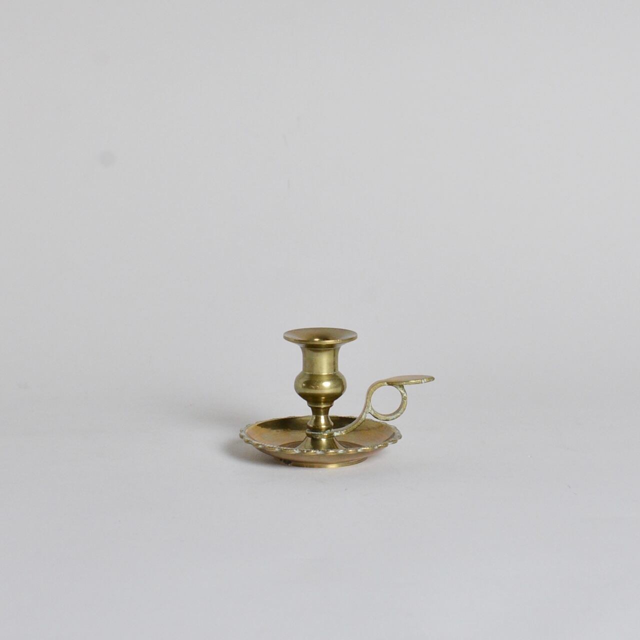 長年の酸化により変化した真鍮独特のくすみや色が、雰囲気のあるキャンドルスタンドです。