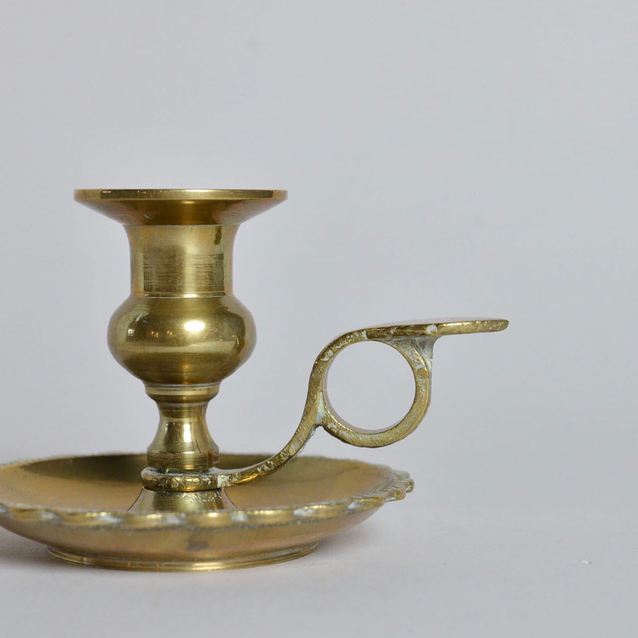 長年の酸化により変化した真鍮独特のくすみや色が、雰囲気のあるキャンドルスタンドです。