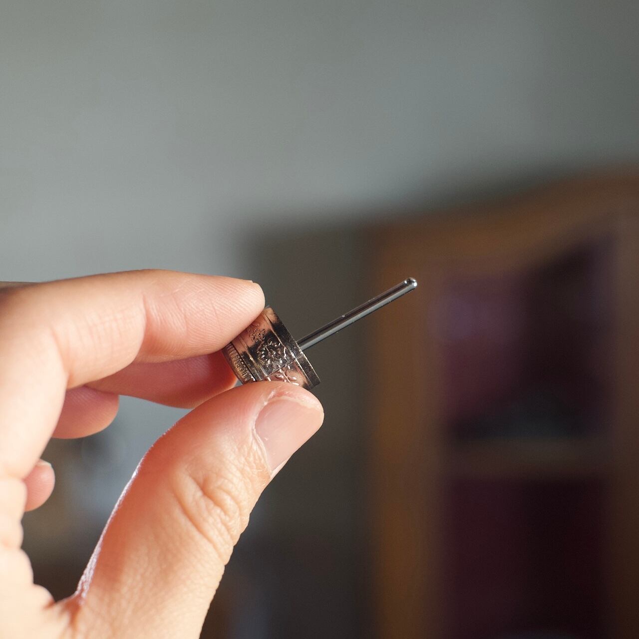 丸と六角形の形があり、どちらも凹凸のあるデザインで蓋には細かい飾りが施されています。