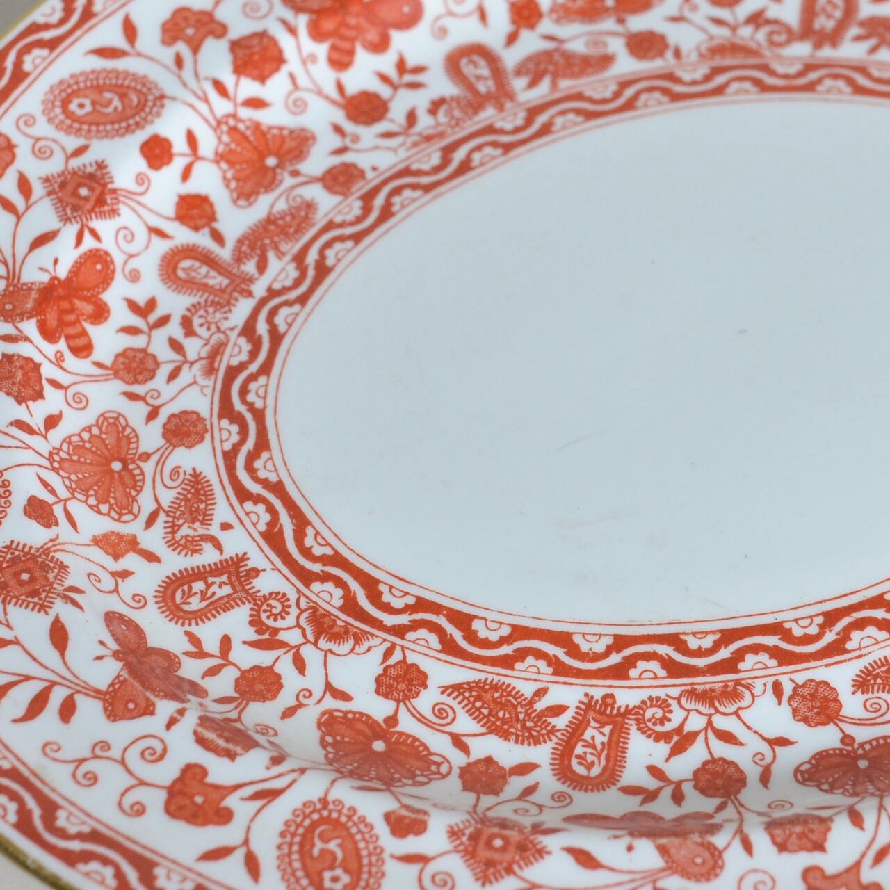 こちらのプレートは植物や蝶などのモチーフが描かれていて、周りを縁取るゴールドのラインが美しいプレートです。