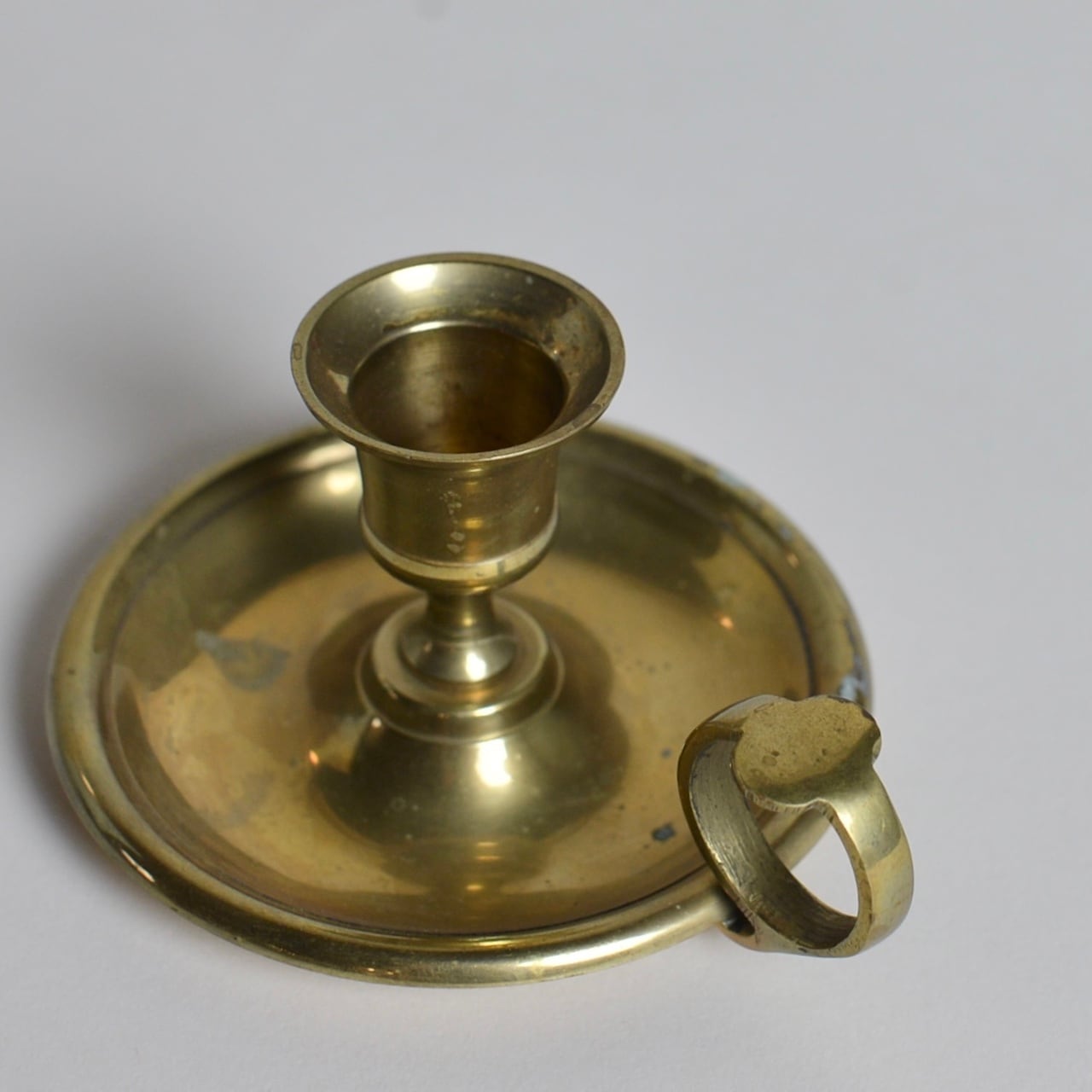 長年の酸化により変化した真鍮独特のくすみや色が、雰囲気のあるキャンドルスタンドです。
