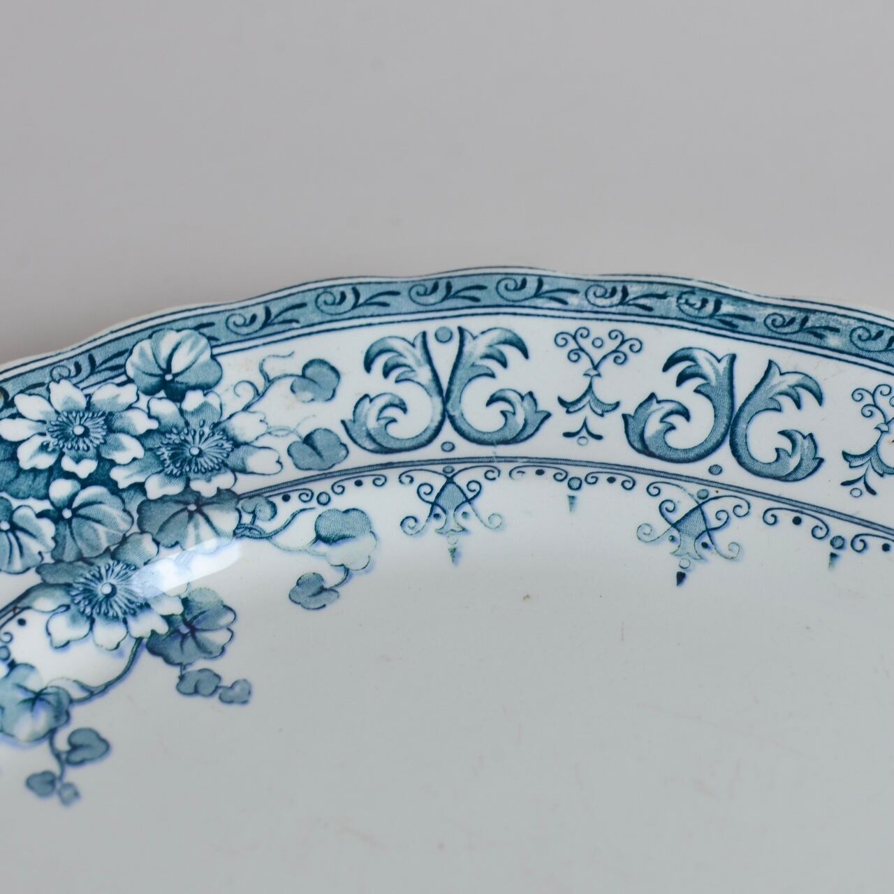 ブルーのラインで描かれた、花や植物のモチーフが美しいプレートです。