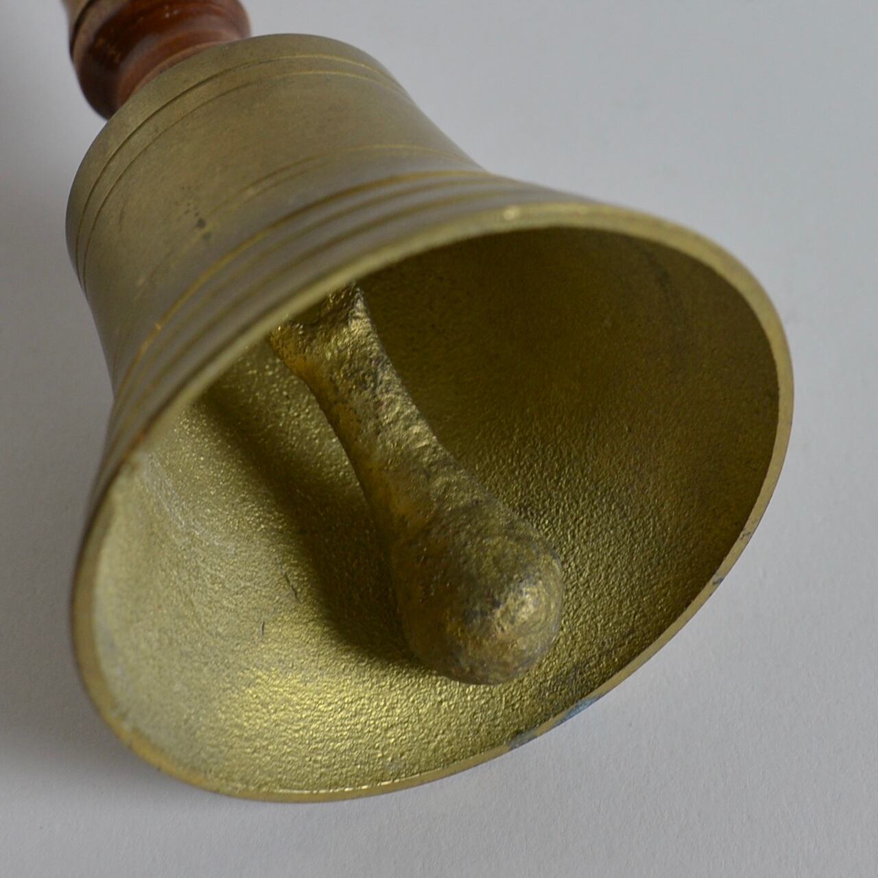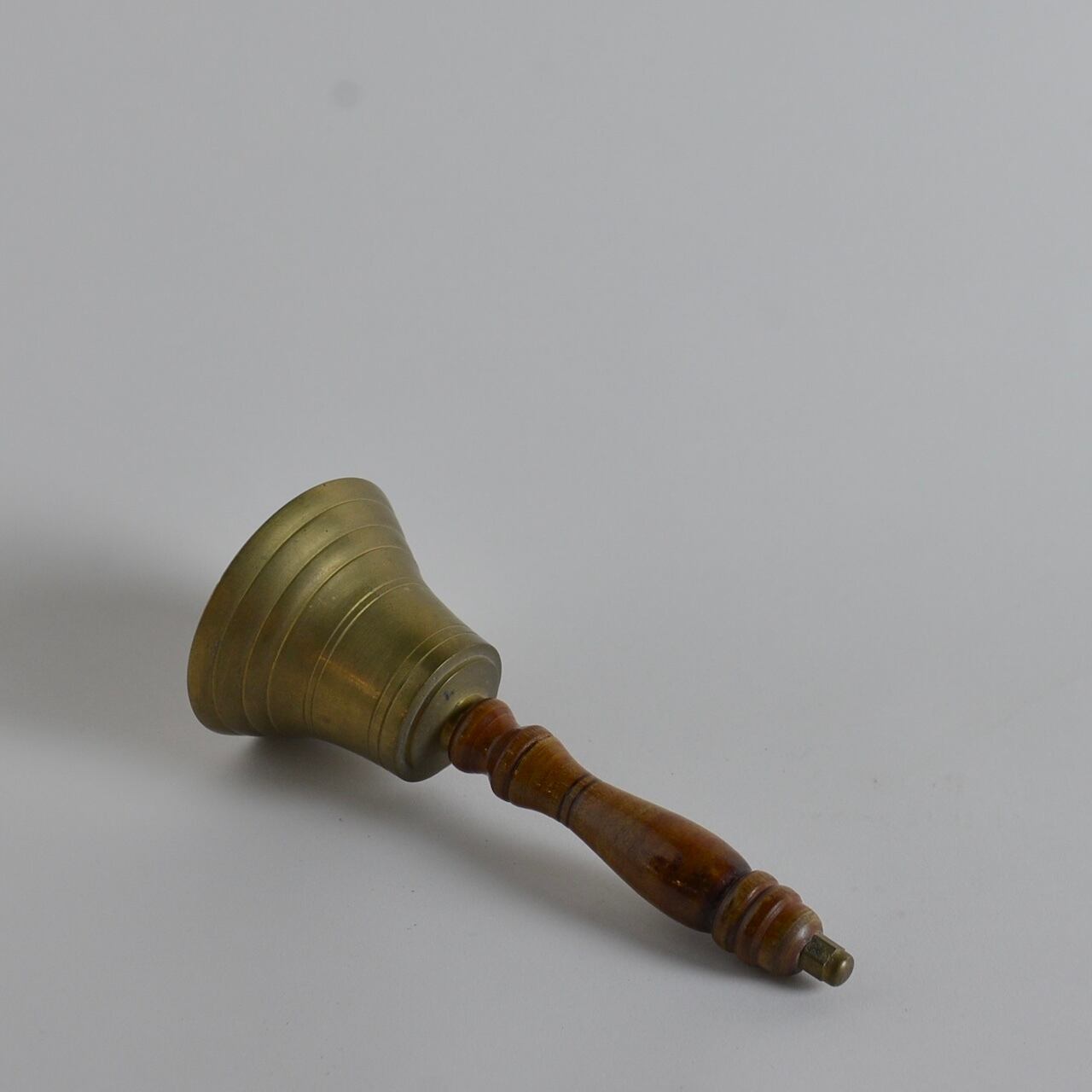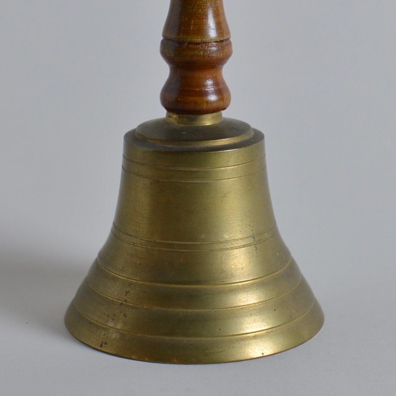 使い込まれた持ち手の木の艶や、真鍮独特のくすみがかっこいい少し大きめのベルです。
