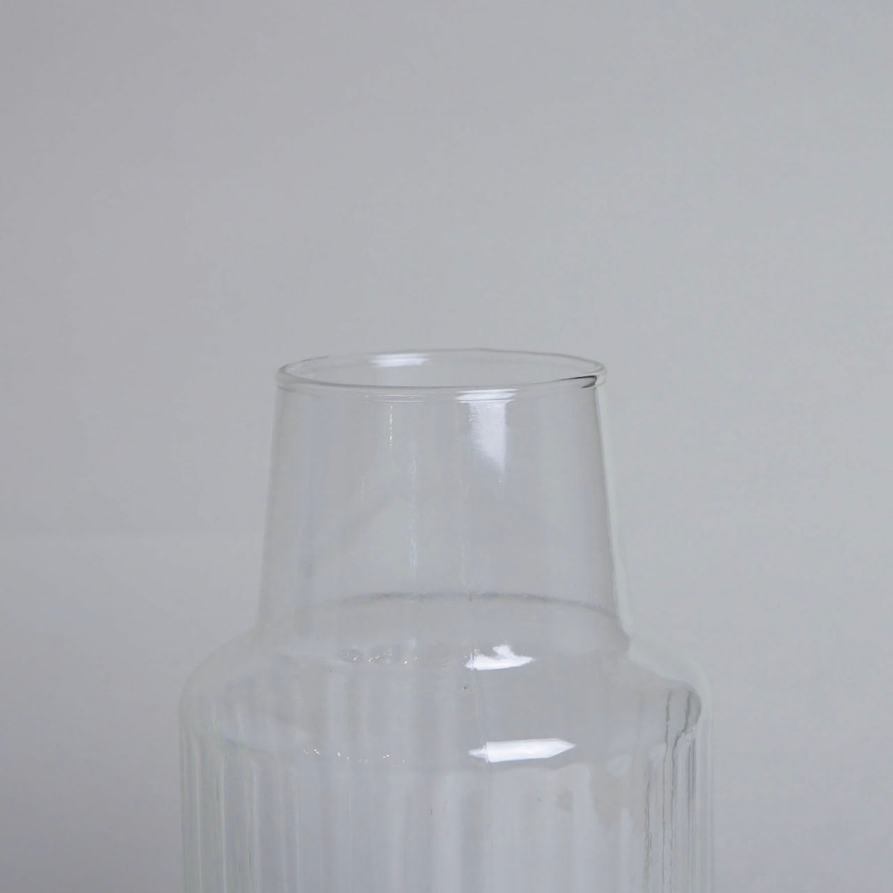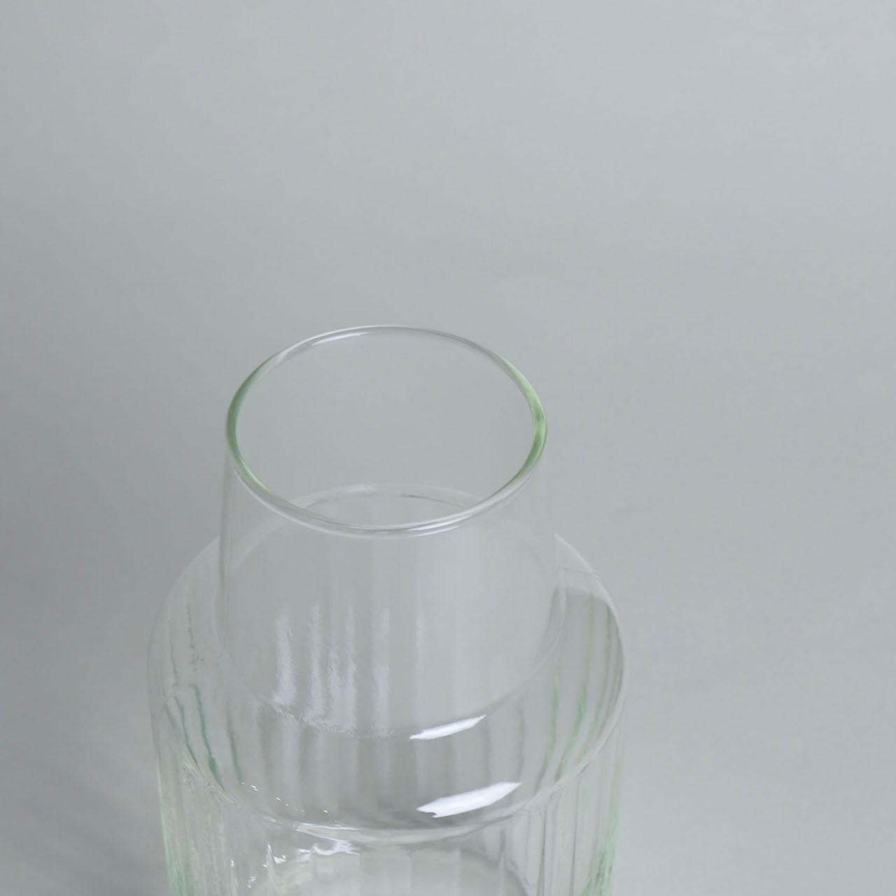 差込口が狭くなっているので短めの枝物などを入れてもバランスが取りやすく、下の方にはストライプの凹凸があり、涼しげで飽きのこないデザインです。