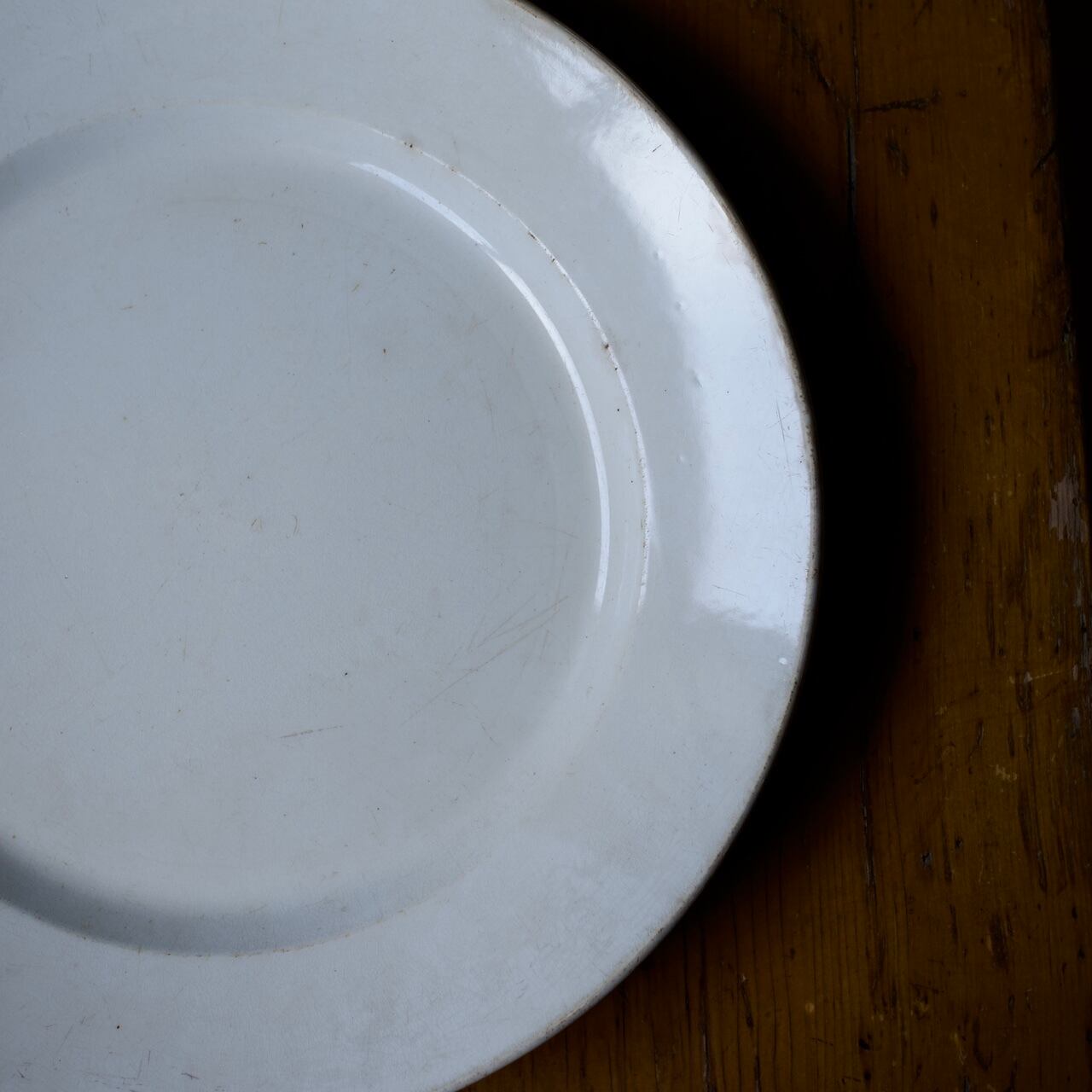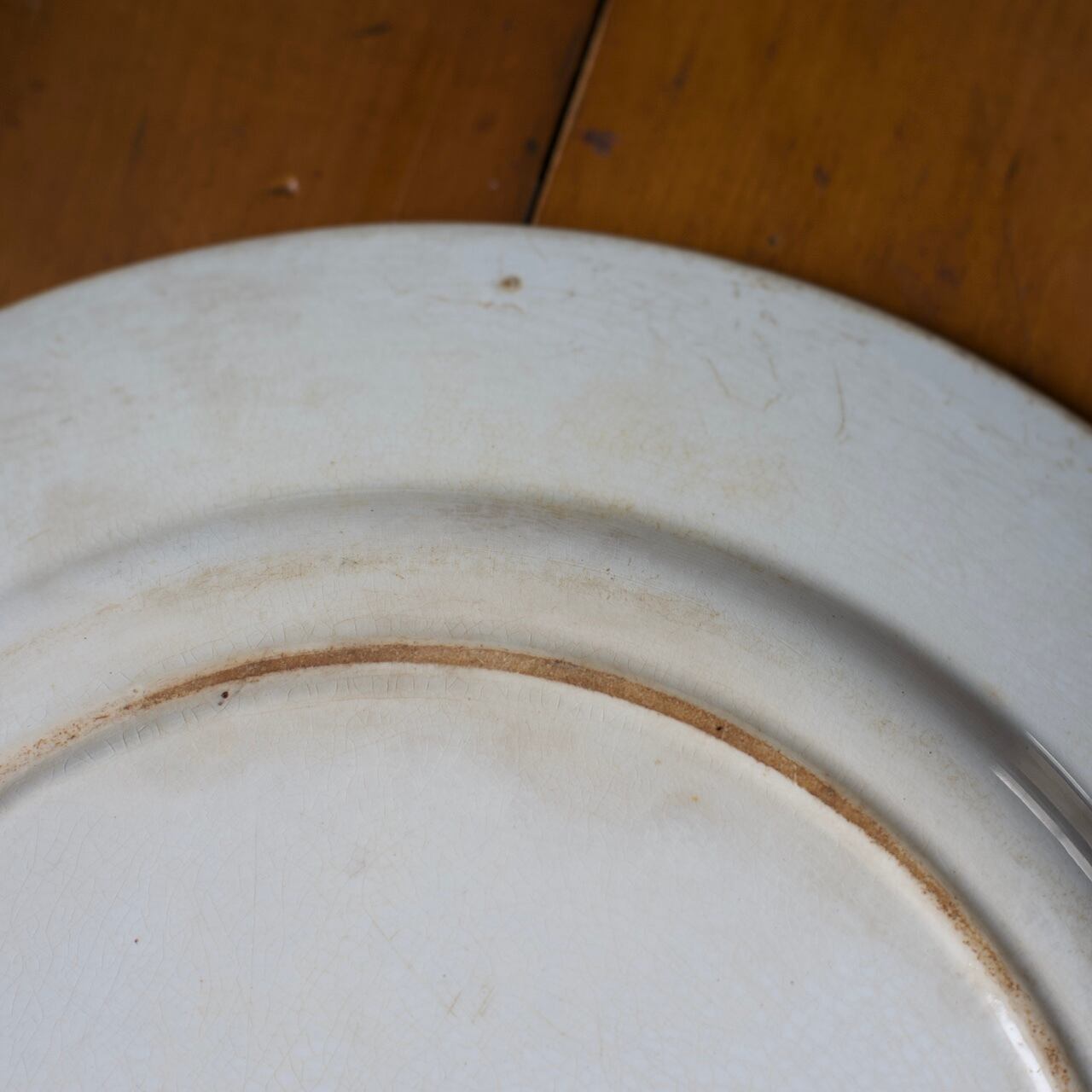 無地の直径320mmと少し大きめなサイズで、経年変化によるくすみやシミがアンティークならではの雰囲気のプレートです。