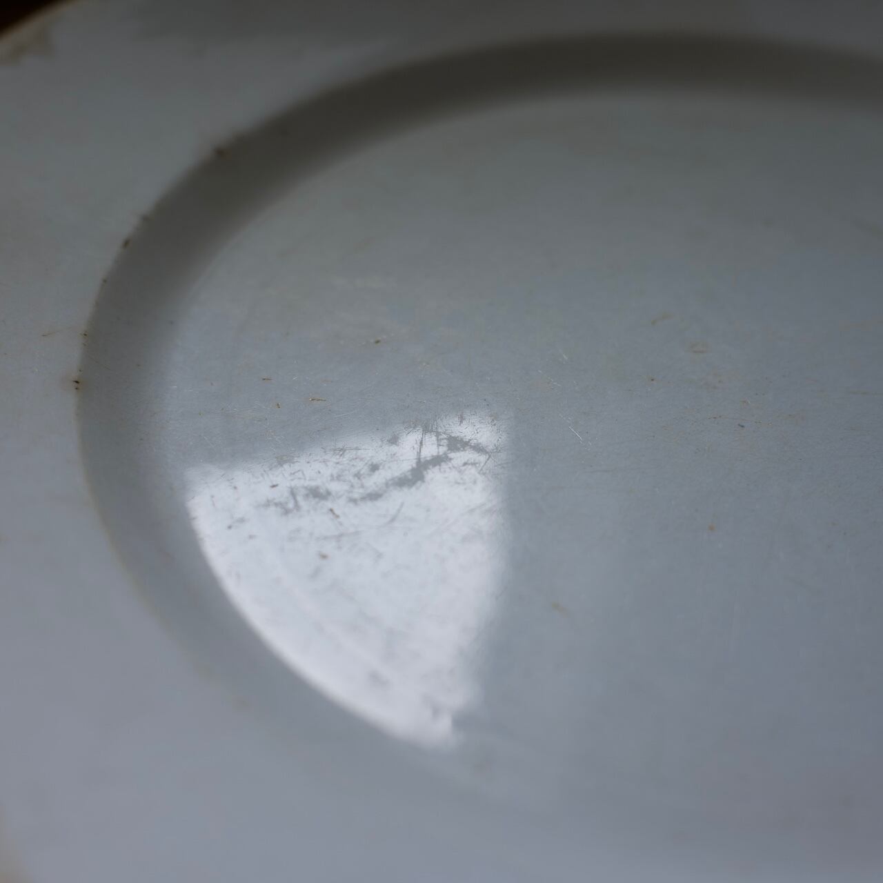 当店で取り扱いをしているフランスの食器は80年以上経過しているものが殆どです。古いものになりますので、貫入(釉薬の細かいひび割れ)やカトラリーによる傷、シミや汚れ、小さな欠けなどがあるものもございます。なるべく細かく写真を撮っておりますが、撮りきれない部分や水を含んで現れる貫入などもありますので、神経質な方や新品のようなクオリティーを求めるお客様には不向きな商品になっております。