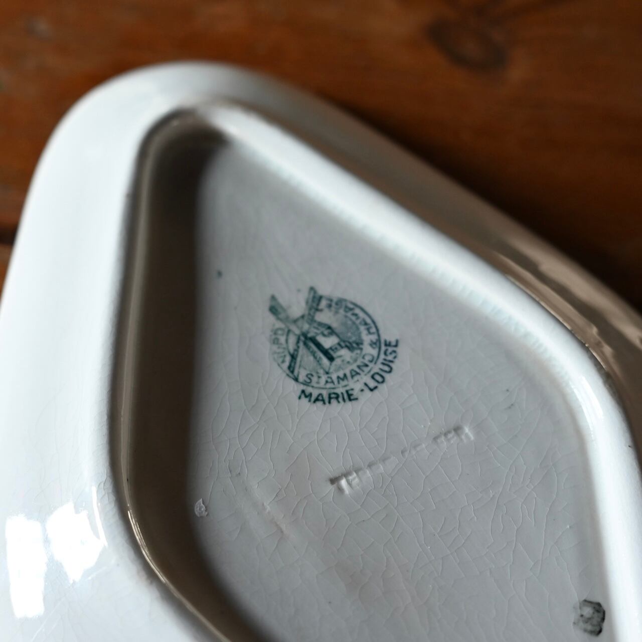 当店で取り扱いをしているフランスの食器は80年以上経過しているものが殆どです。古いものになりますので、貫入(釉薬の細かいひび割れ)やカトラリーによる傷、シミや汚れ、小さな欠けなどがあるものもございます。なるべく細かく写真を撮っておりますが、撮りきれない部分や水を含んで現れる貫入などもありますので、神経質な方や新品のようなクオリティーを求めるお客様には不向きな商品になっております。