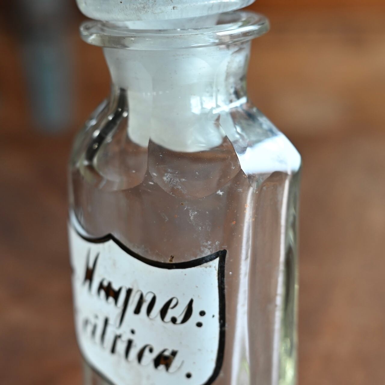 くすみや傷が多数あり、アンティークの魅力が詰まったボトルです。