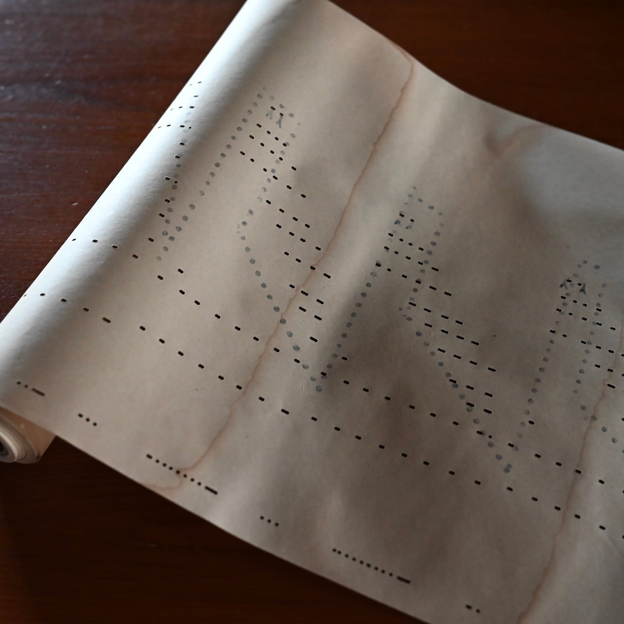 たくさん穴の開いた紙製のロールで、その穴に合わせて楽譜が記録されていて、自動ピアノに取り付けて空気圧をかけることにより音楽が再生される仕組みになっています。