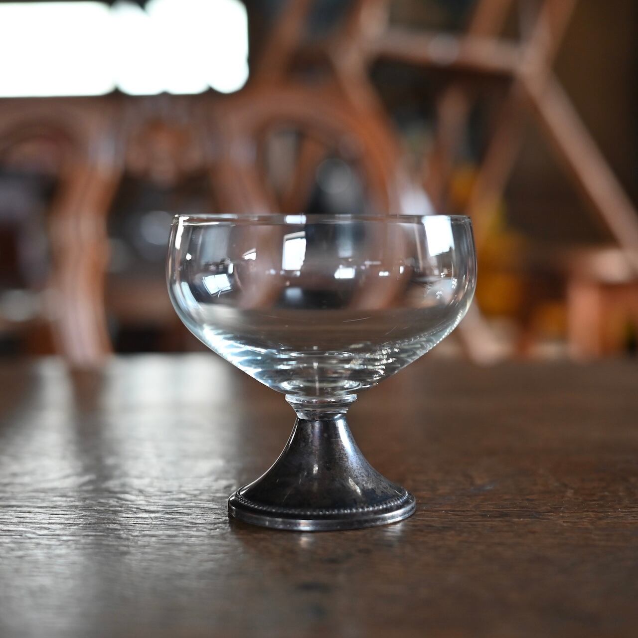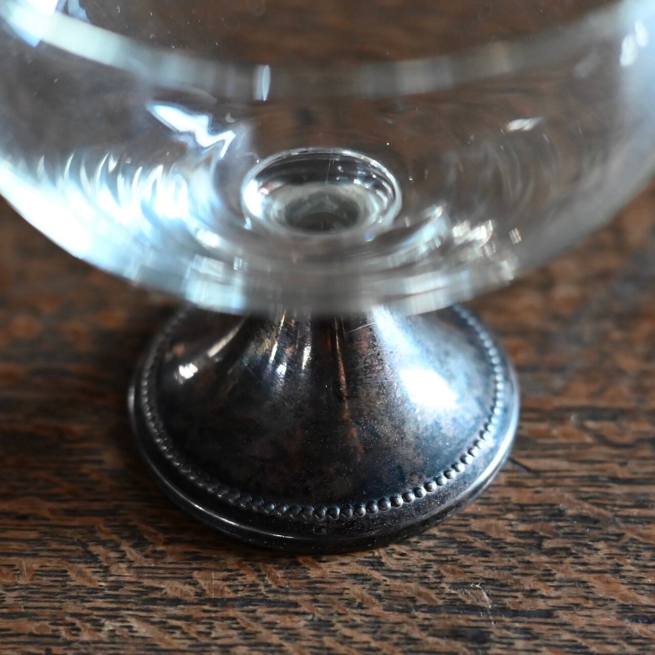 シルバーの脚とぽってりとしたガラスの組み合わせが素敵なグラスです。
