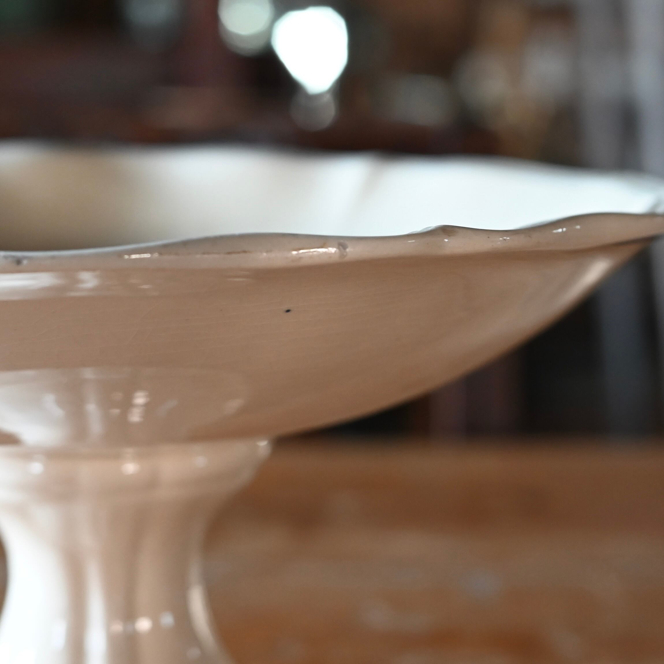 当店で取り扱いをしているフランスの食器は80年以上経過しているものが殆どです。古いものになりますので、貫入(釉薬の細かいひび割れ)やカトラリーによる傷、シミや汚れ、小さな欠けなどがあるものもございます。なるべく細かく写真を撮っておりますが、撮りきれない部分や水を含んで現れる貫入などもありますので、神経質な方や新品のようなクオリティーを求めるお客様には不向きな商品になっております。