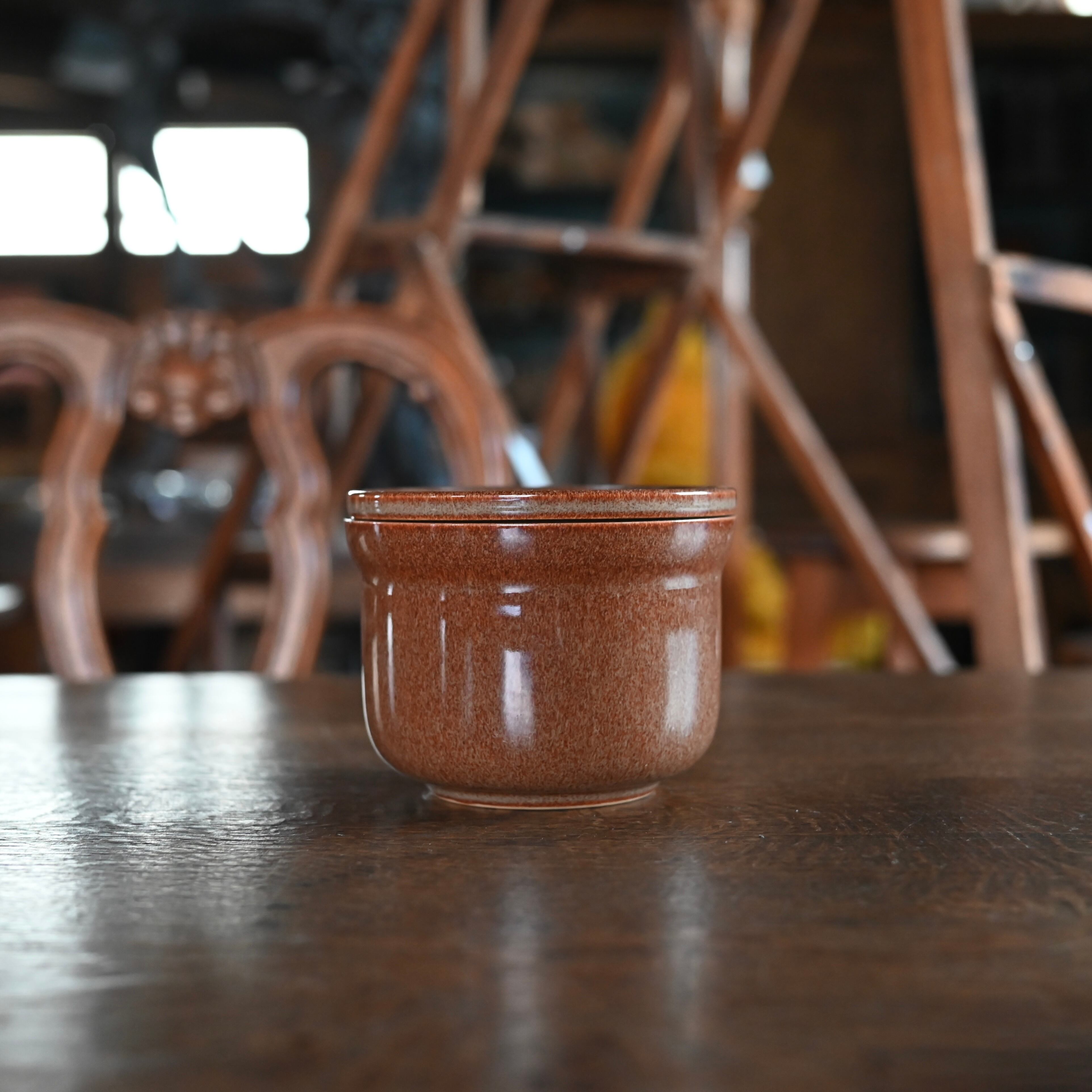 落ち着いたブラウンの色味がどこか北欧っぽい雰囲気で、ぽってりしたフォルムが可愛いキャニターです。