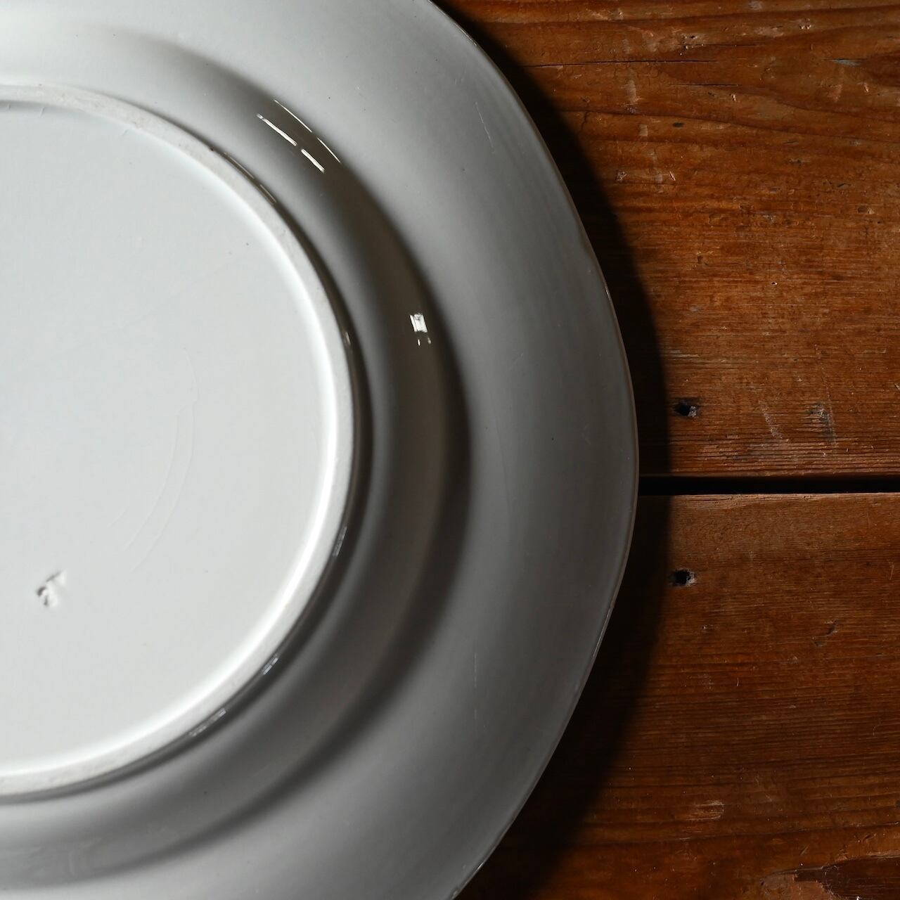 当店で取り扱いをしているフランスの食器は80年以上経過しているものが殆どです。古いものになりますので、貫入(釉薬の細かいひび割れ)やカトラリーによる傷、シミや汚れ、小さな欠けなどがあるものもございます。なるべく細かく写真を撮っておりますが、撮りきれない部分や水を含んで現れる貫入などもありますので、神経質な方や新品のようなクオリティーを求めるお客様には不向きな商品になっております。