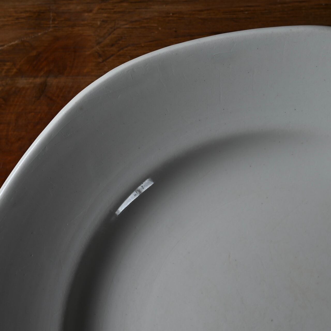 当店で取り扱いをしているフランスの食器は80年以上経過しているものが殆どです。古いものになりますので、貫入(釉薬の細かいひび割れ)やカトラリーによる傷、シミや汚れ、小さな欠けなどがあるものもございます。なるべく細かく写真を撮っておりますが、撮りきれない部分や水を含んで現れる貫入などもありますので、神経質な方や新品のようなクオリティーを求めるお客様には不向きな商品になっております。